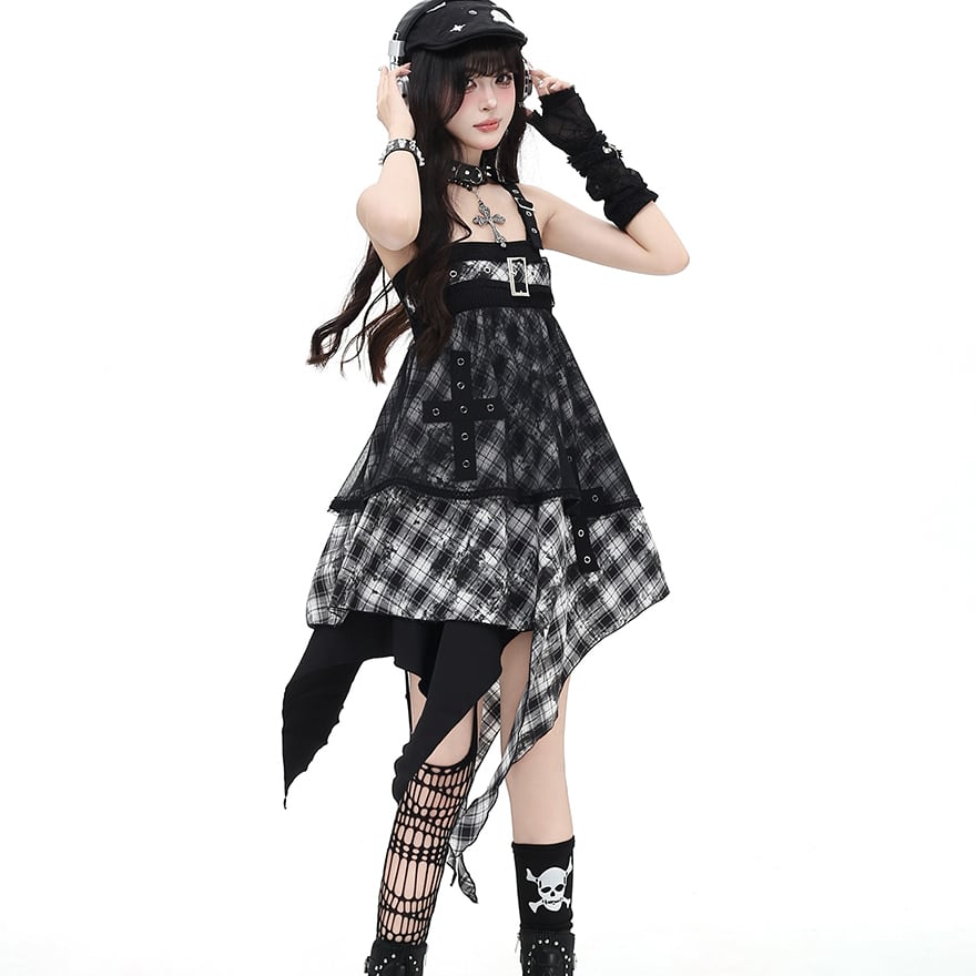 サブカル 服 地雷系 通販 ワンピース チェック柄 レイヤード CRAZYGIRL ダークファッション 闇かわいい Y2K