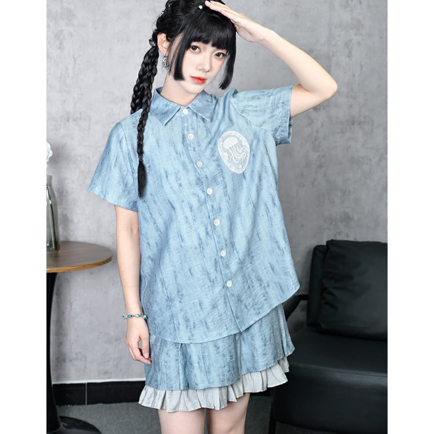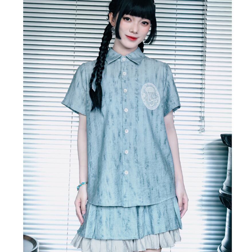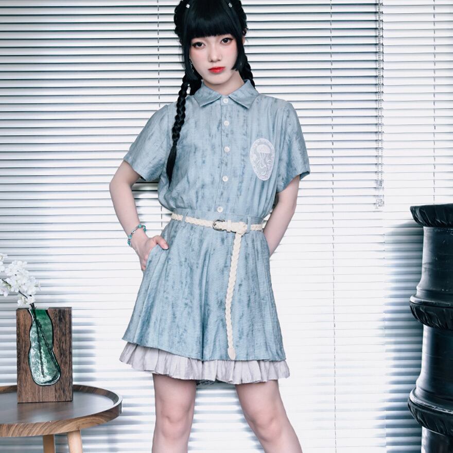 関連キーワード: #チャイナ風 #中華服 #中華系ファッション #サブカル #地雷系 #シャツ #半袖 #ダイダイ柄 #タイダイ #刺繍 #ワッペン #水色 #夏服 #カジュアル #古怪舎