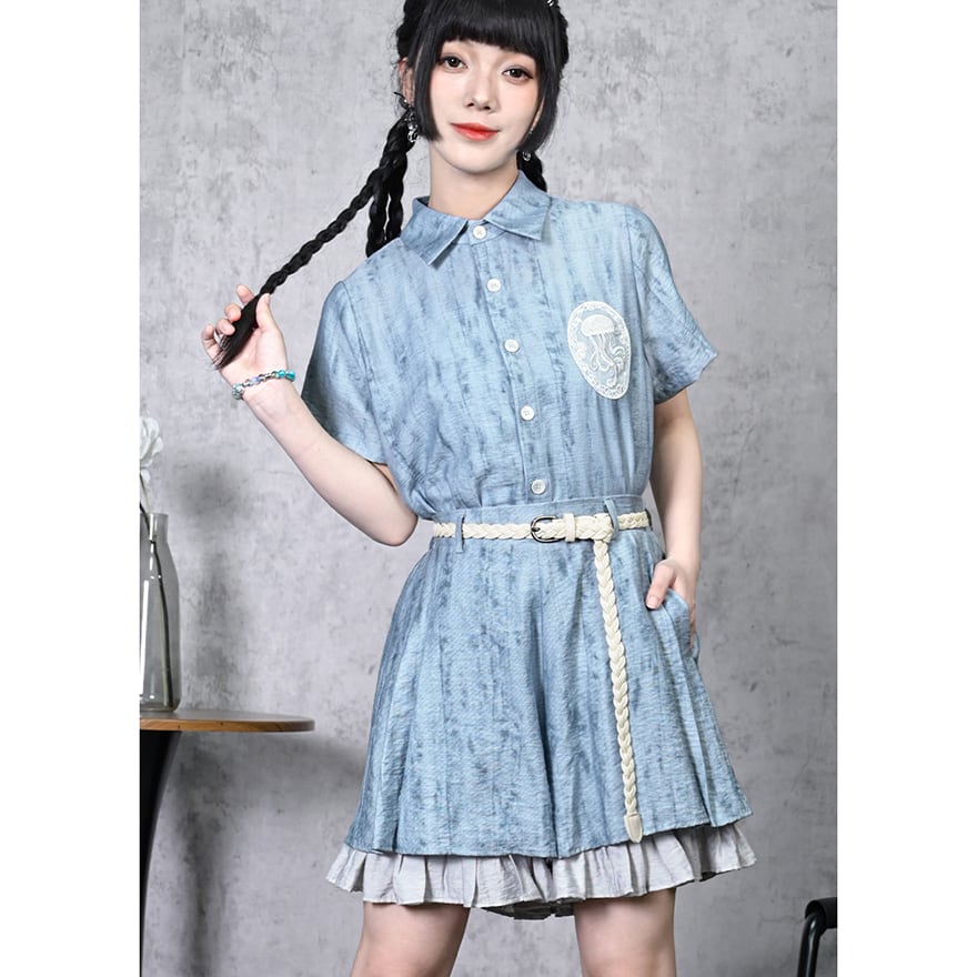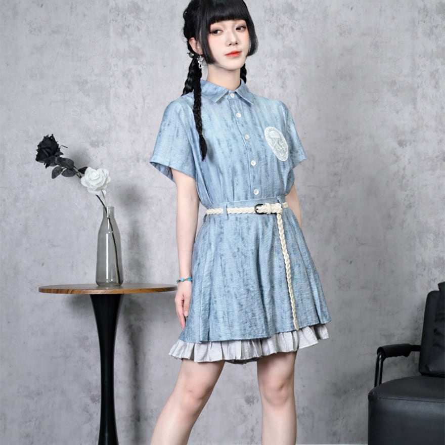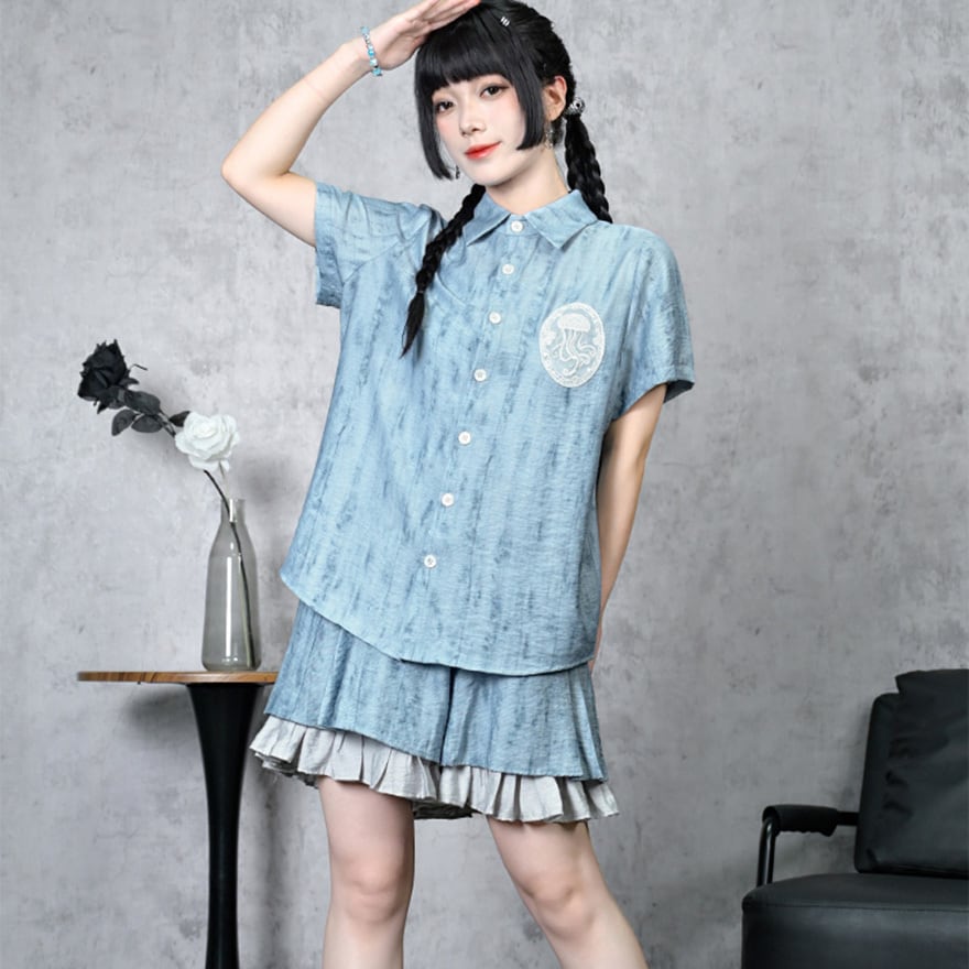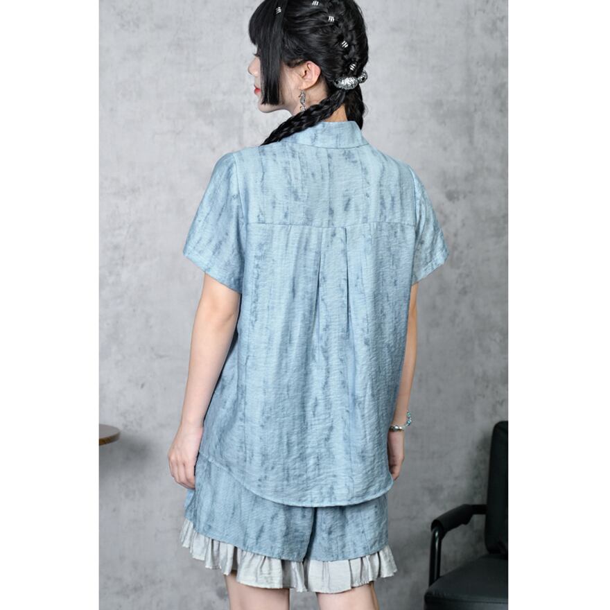 関連キーワード: #チャイナ風 #中華服 #中華系ファッション #サブカル #地雷系 #パンツ #キュロット #ショートパンツ #ダイダイ柄 #タイダイ #フリル #水色 #夏服 #カジュアル #セットアップ可能 #古怪舎