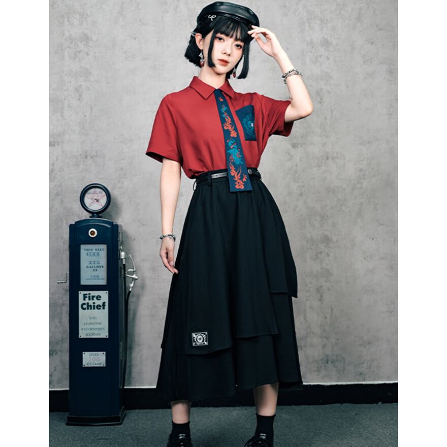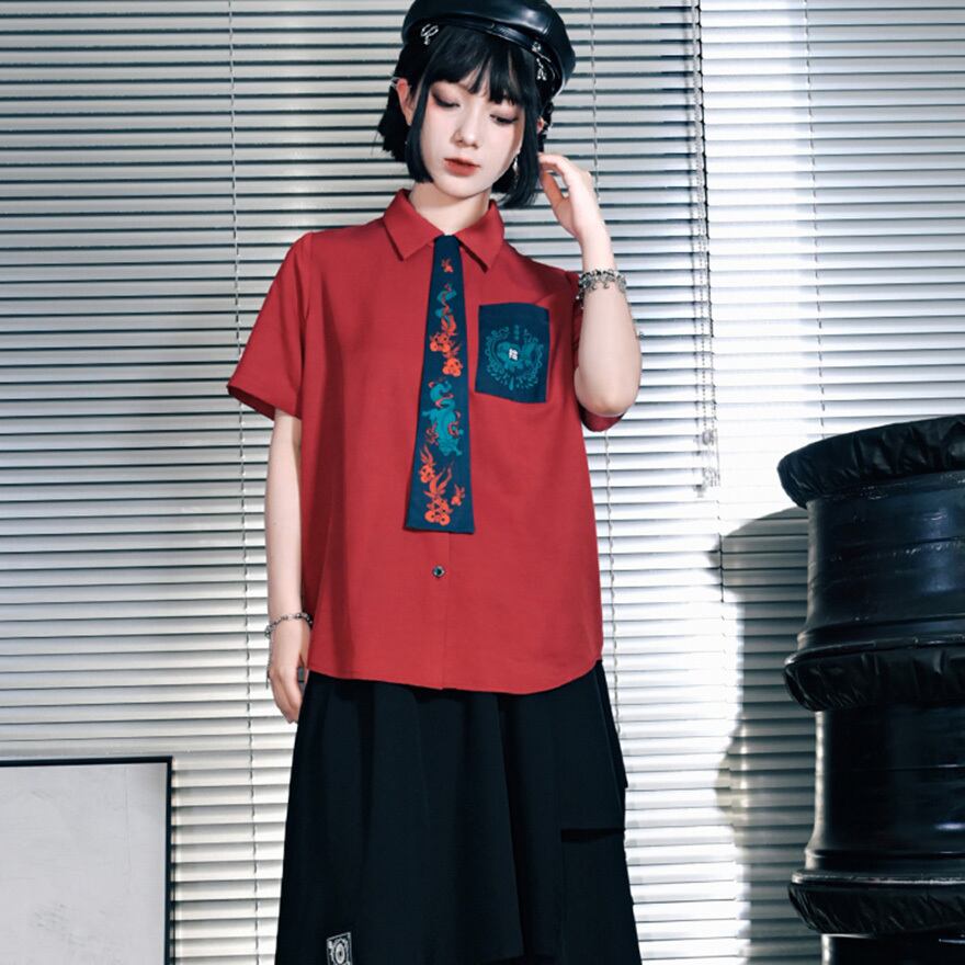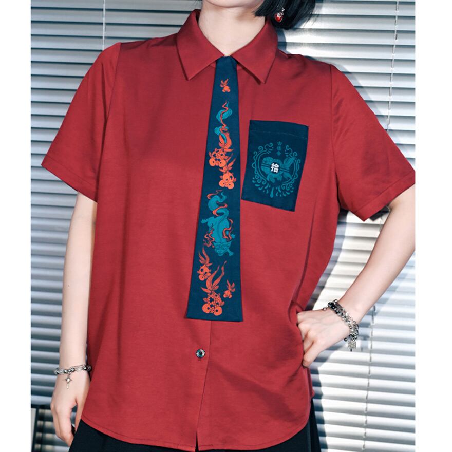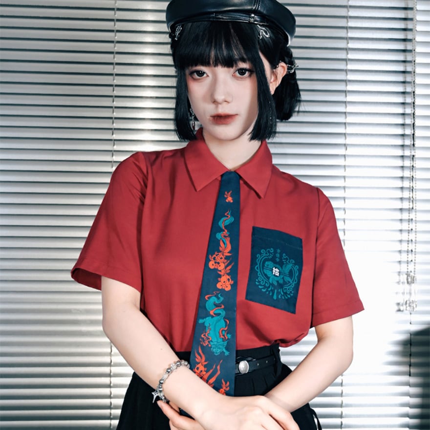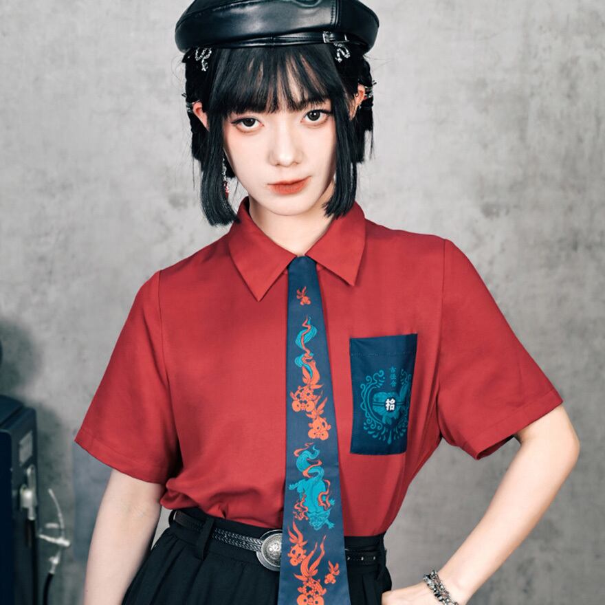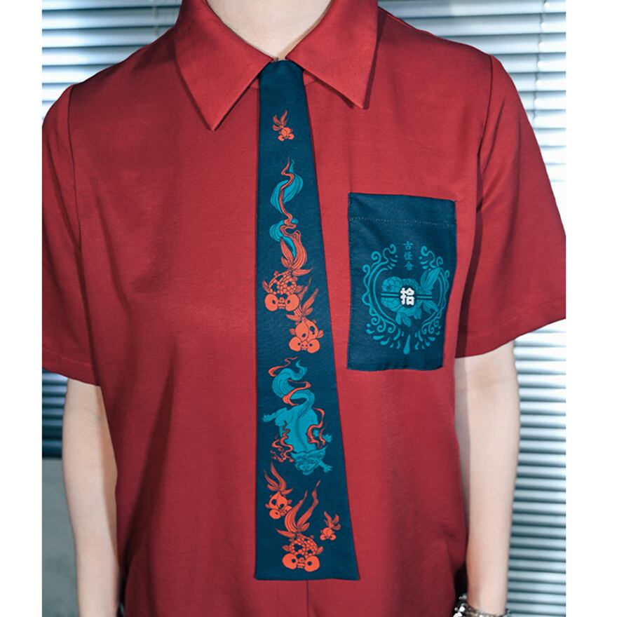 関連キーワード: #チャイナ風 #中華服 #中華系ファッション #サブカル #地雷系 #ストリート #シャツ #半袖 #龍 #ドラゴン #プリント #ネクタイ風 #赤 #夏服 #ユニセックス #古怪舎
