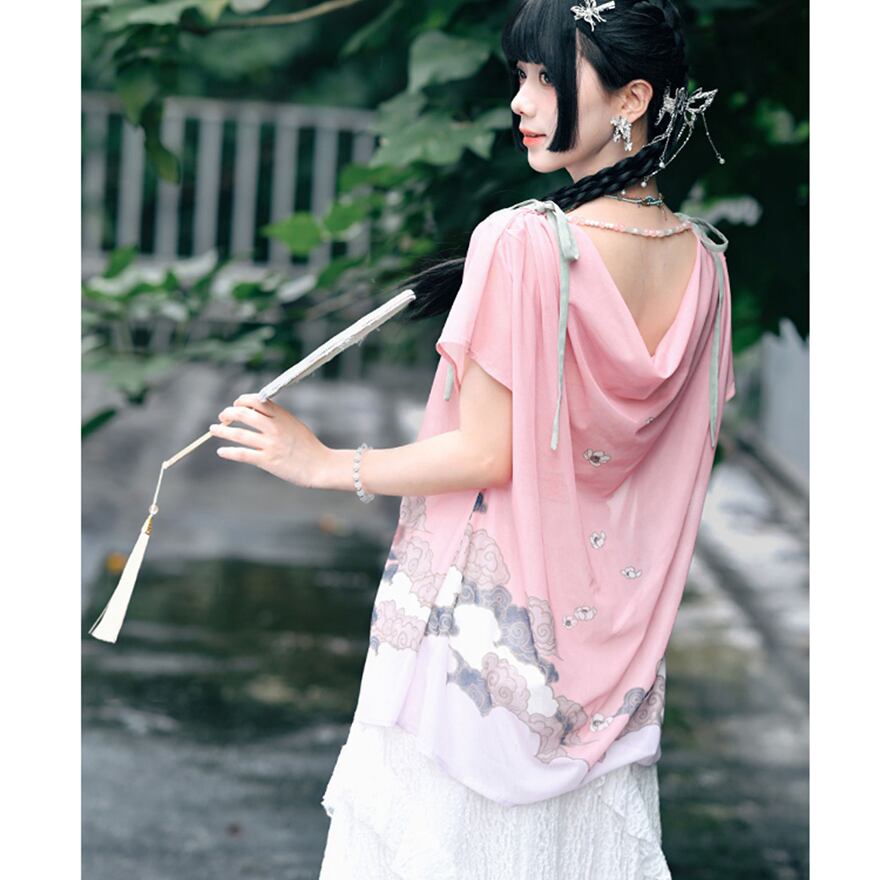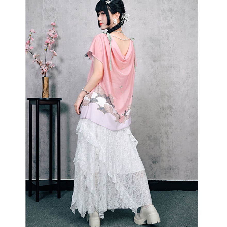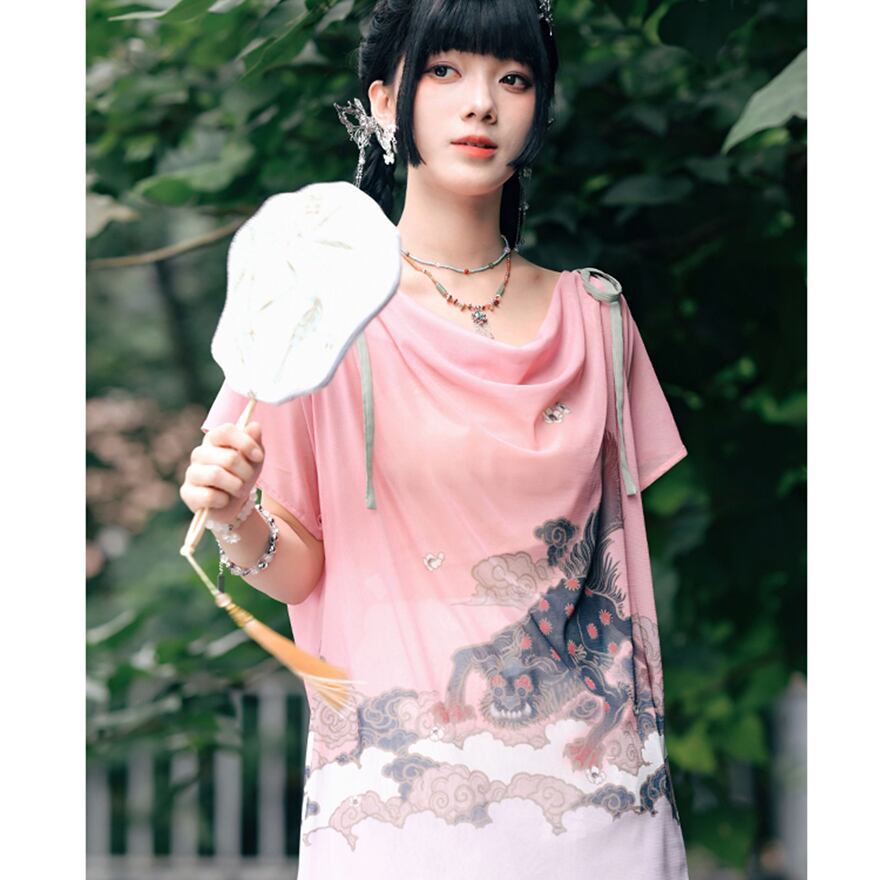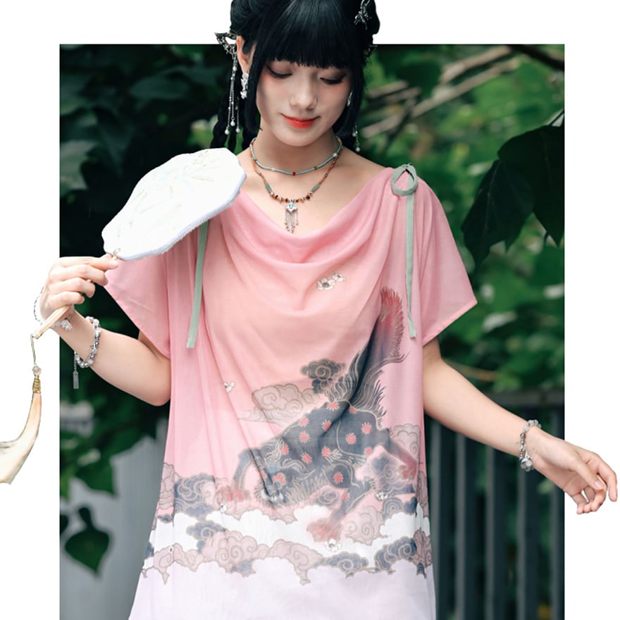関連キーワード: #チャイナ風 #中華服 #中華系ファッション #サブカル #地雷系 #トップス #シャツ #メッシュ #シアー #プリント #神獣 #ピンク #夏服 #レイヤード #ドレープ #ゆったり #古怪舎 #バックシャン