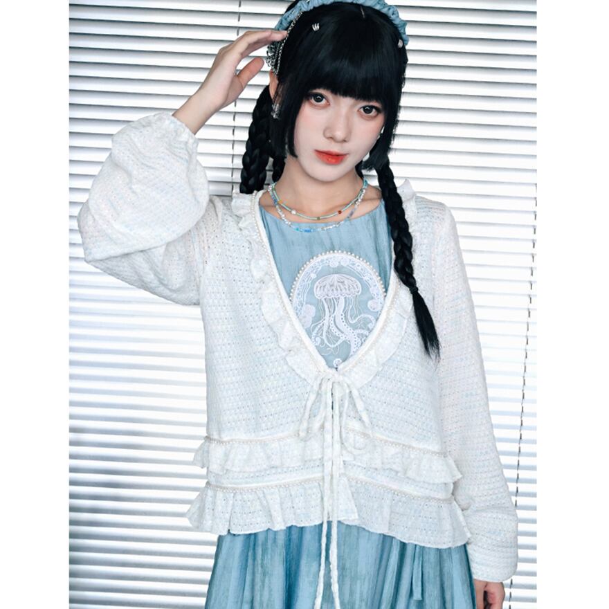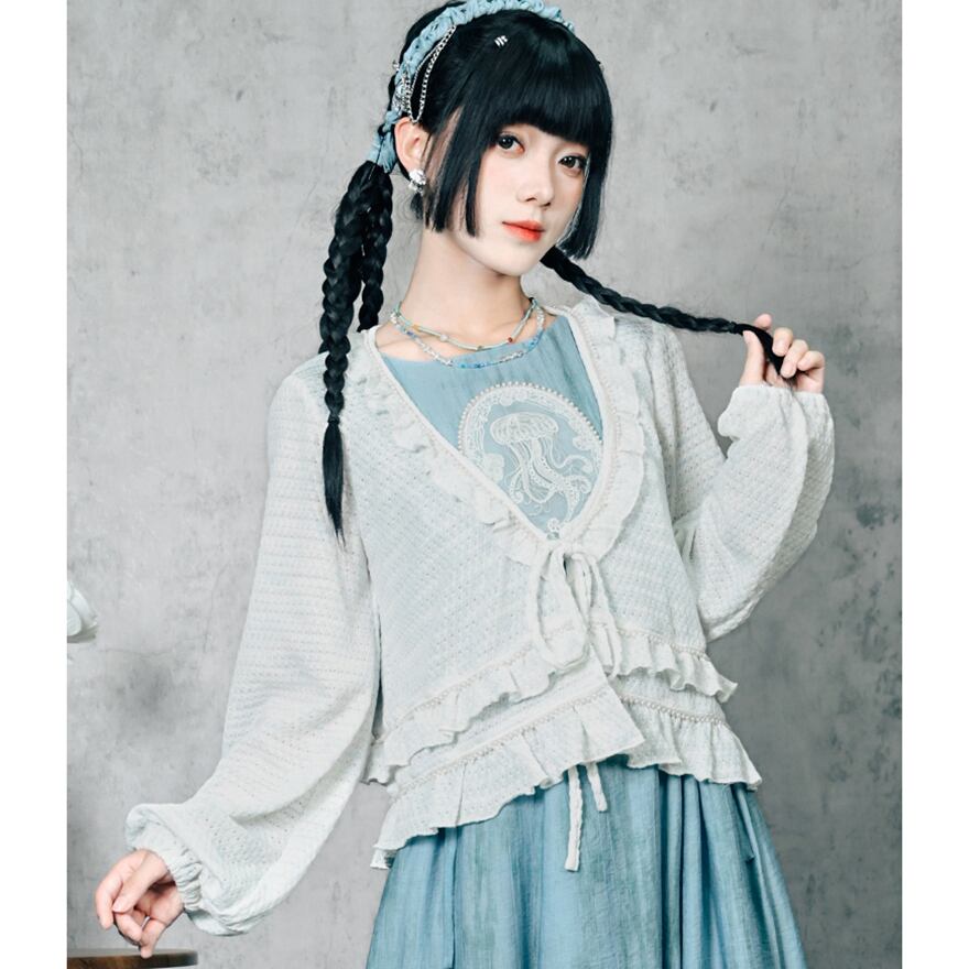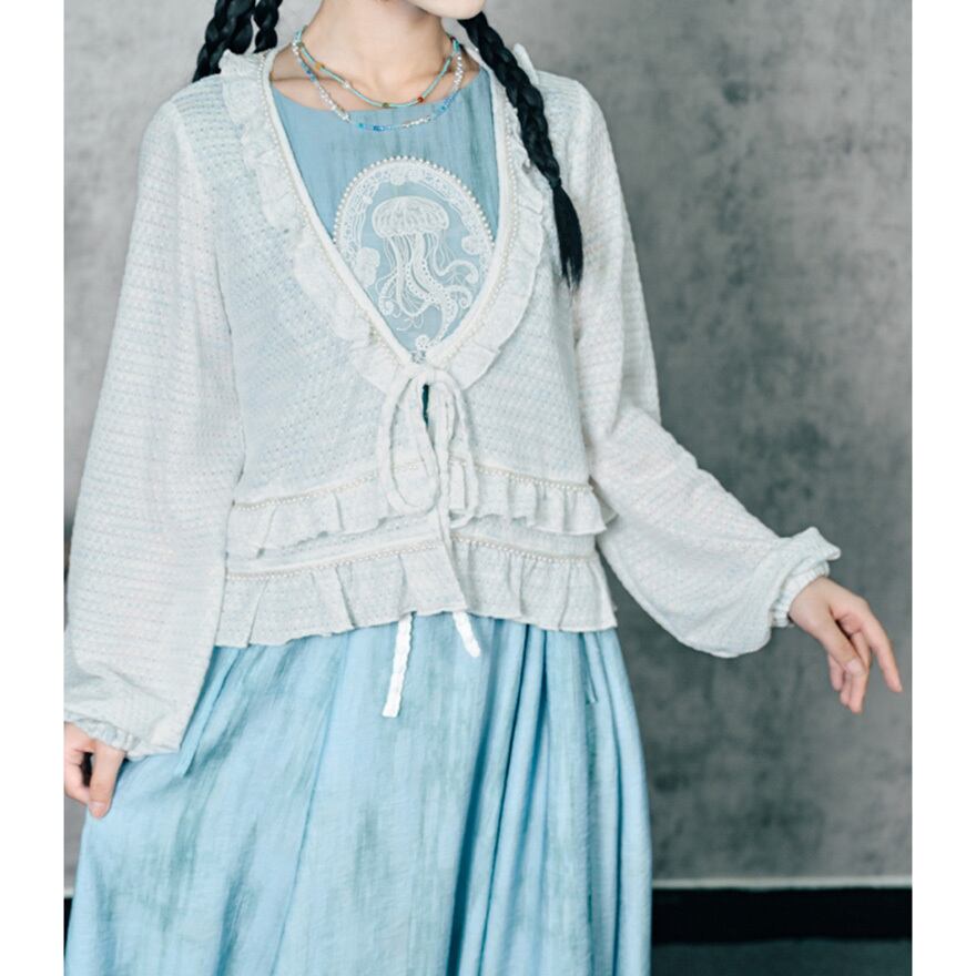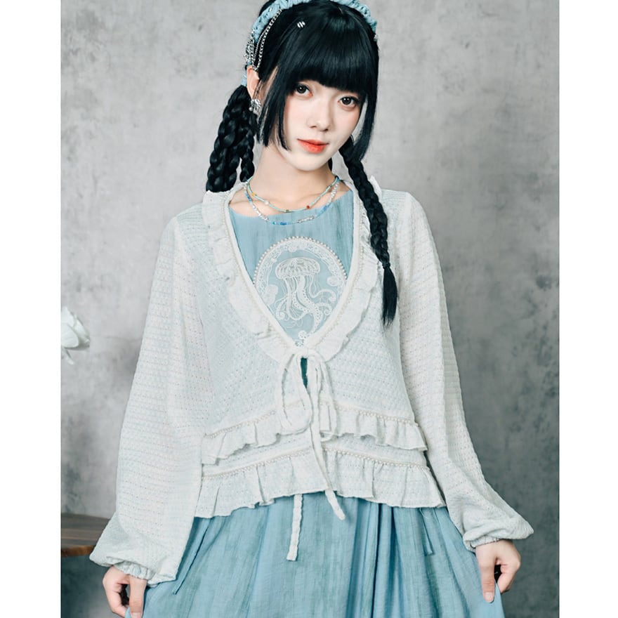 関連キーワード: #チャイナ風 #中華服 #中華系ファッション #サブカル #地雷系 #カーディガン #羽織り #ボレロ #フリル #ガーリー #白 #夏服 #冷房対策 #長袖 #古怪舎