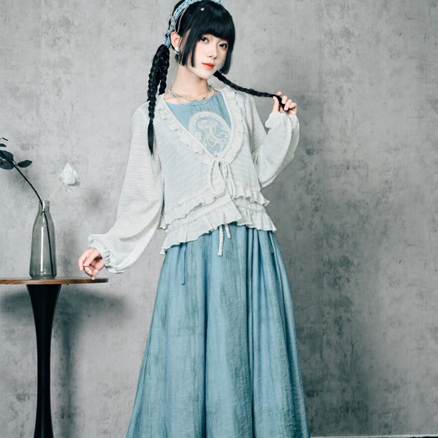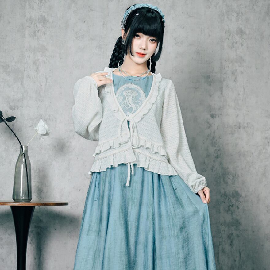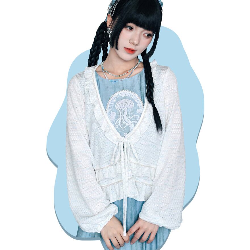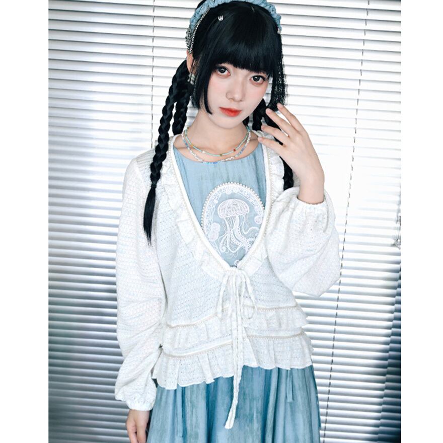 関連キーワード: #チャイナ風 #中華服 #中華系ファッション #サブカル #地雷系 #カーディガン #羽織り #ボレロ #フリル #ガーリー #白 #夏服 #冷房対策 #長袖 #古怪舎