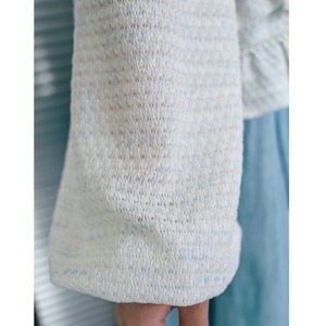 フロントはリボンで結ぶ仕様になっており、ガーリーなアクセントをプラス。ふんわりとしたボリュームスリーブもポイントです。
