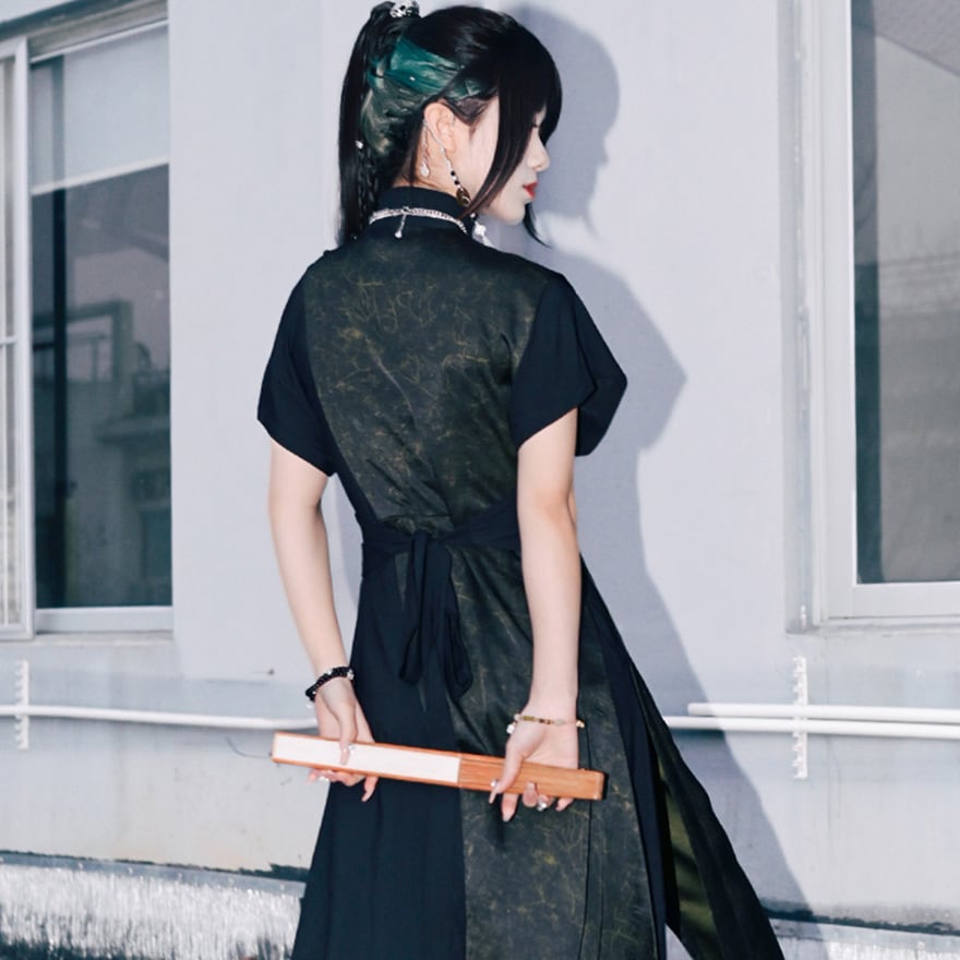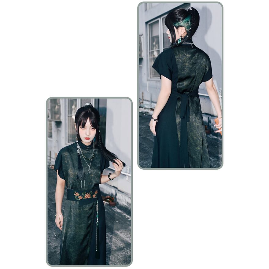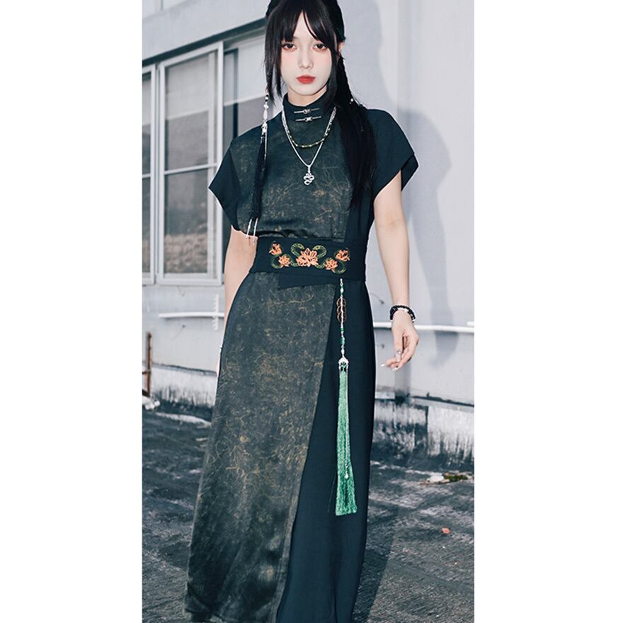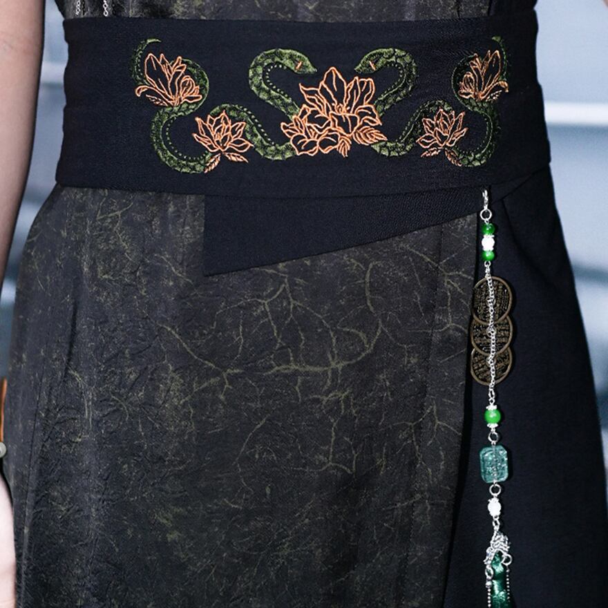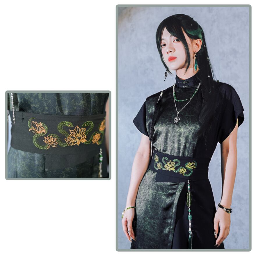 サブカル 服 地雷系 通販 チャイナ風服 古怪舎 ベルト 刺繍 蛇柄 腰帯 中華系ファッション夏服