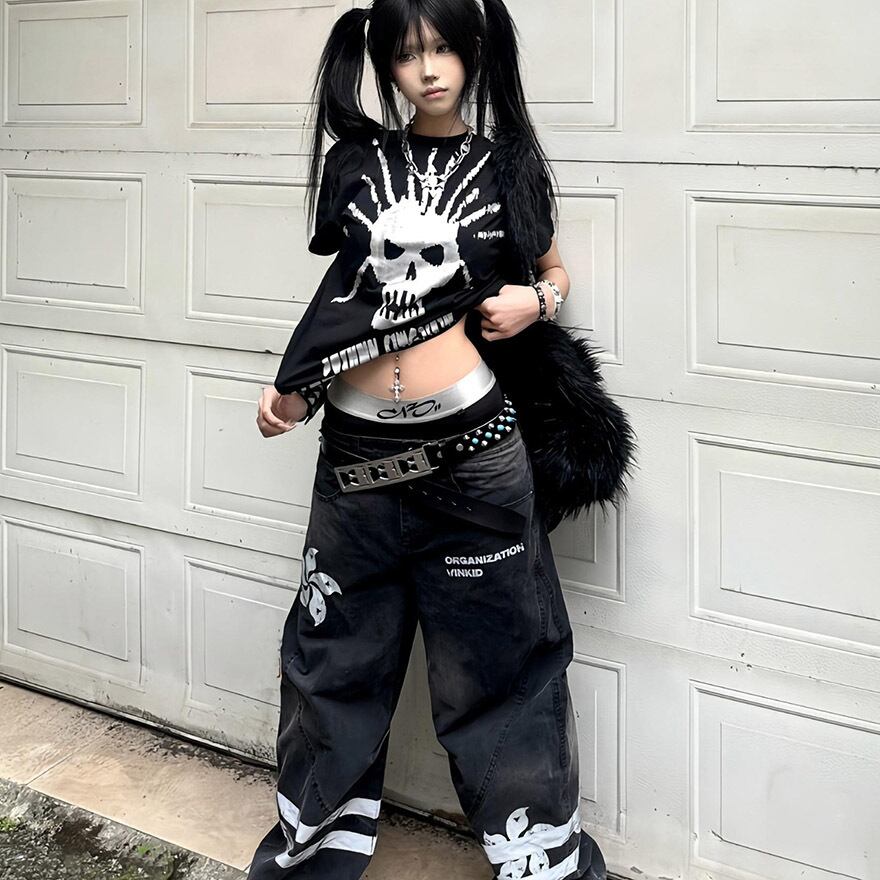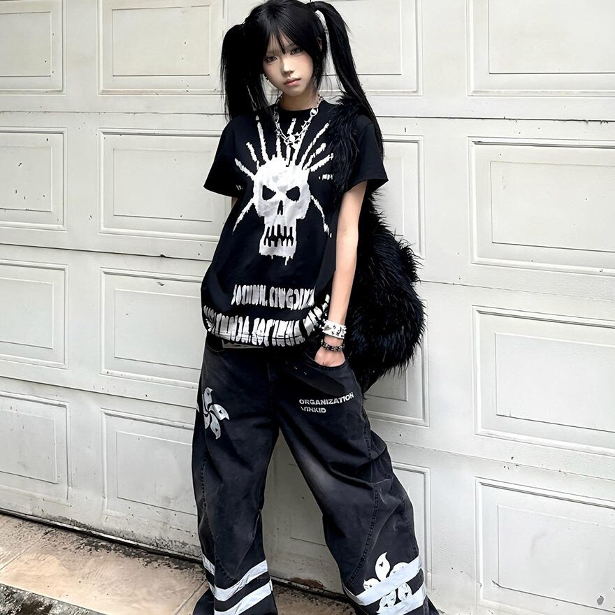 関連キーワード: #サブカル #地雷系 #Y2K #ストリートファッション #パンク #ロック #半袖Tシャツ #スカル #ドクロ #モノトーン #バンドT風 #グランジ #病みかわ #V系