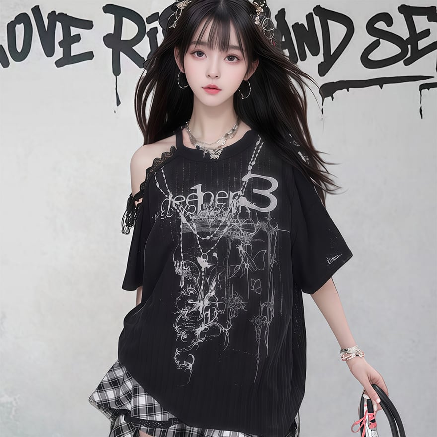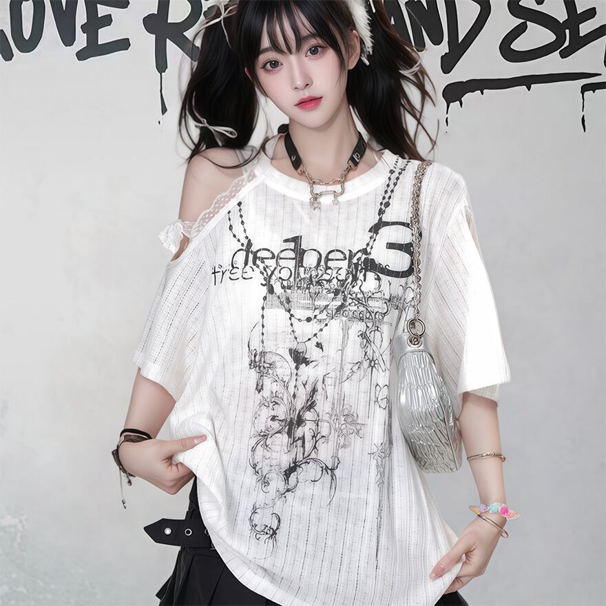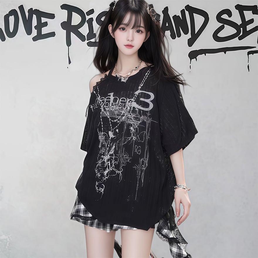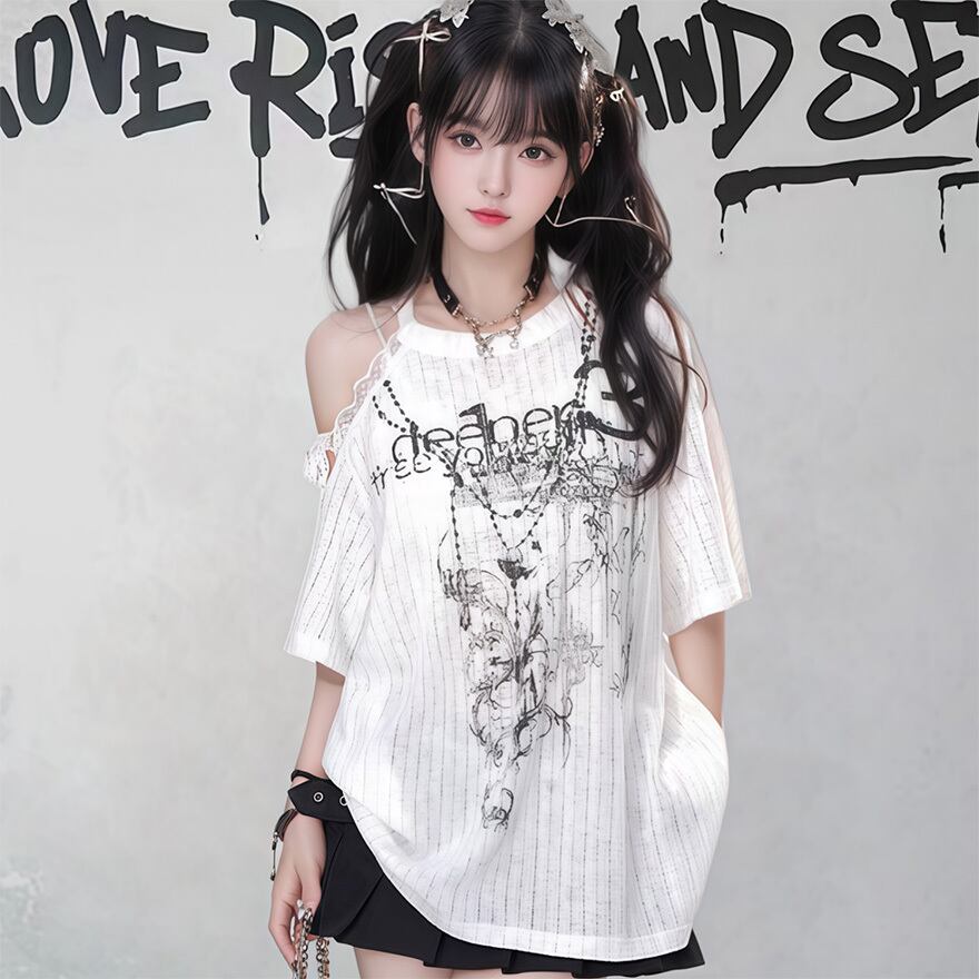関連キーワード: #サブカル #地雷系 #Y2K #ストリートファッション #ゴシック #パンク #オフショルダー #肩あき #ワンショルダー #肌見せ #レース #病みかわ #天使界隈 #グランジ #オーバーサイズ