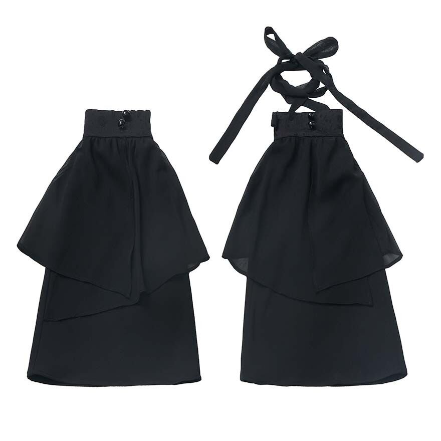 歩くたびにひらひらと揺れる裾が、ミステリアスでドラマティックな足元を演出します。