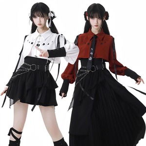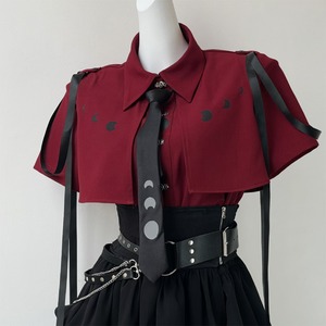 関連キーワード: #サブカル #地雷系 #Y2K #半袖シャツ #ブラウス #ネクタイ付き #クロップド丈 #ショート丈 #個性的 #ストリートファッション #モード系 #ゴシック #病みかわいい #月モチーフ #リボン