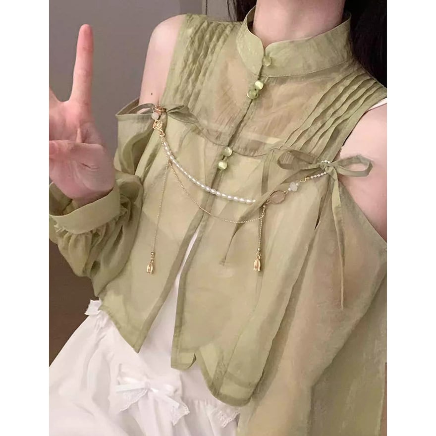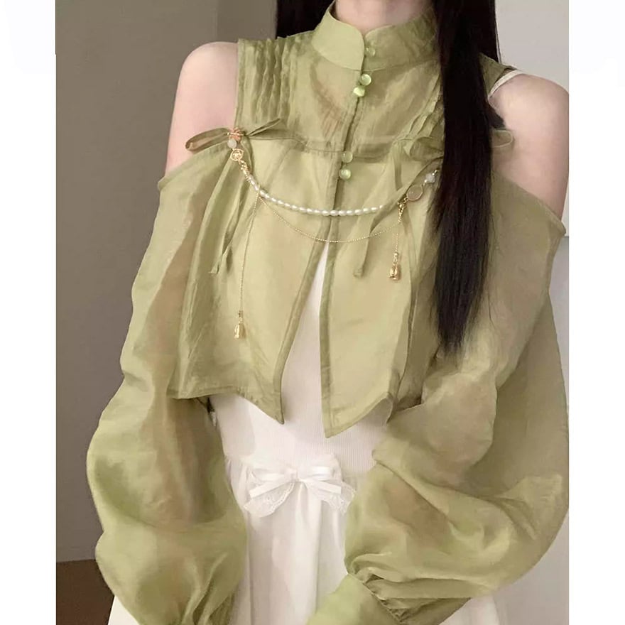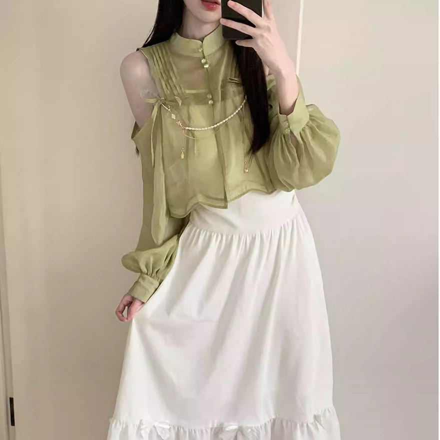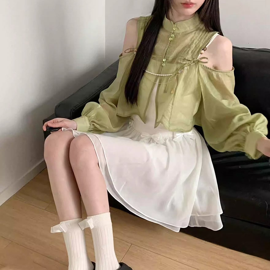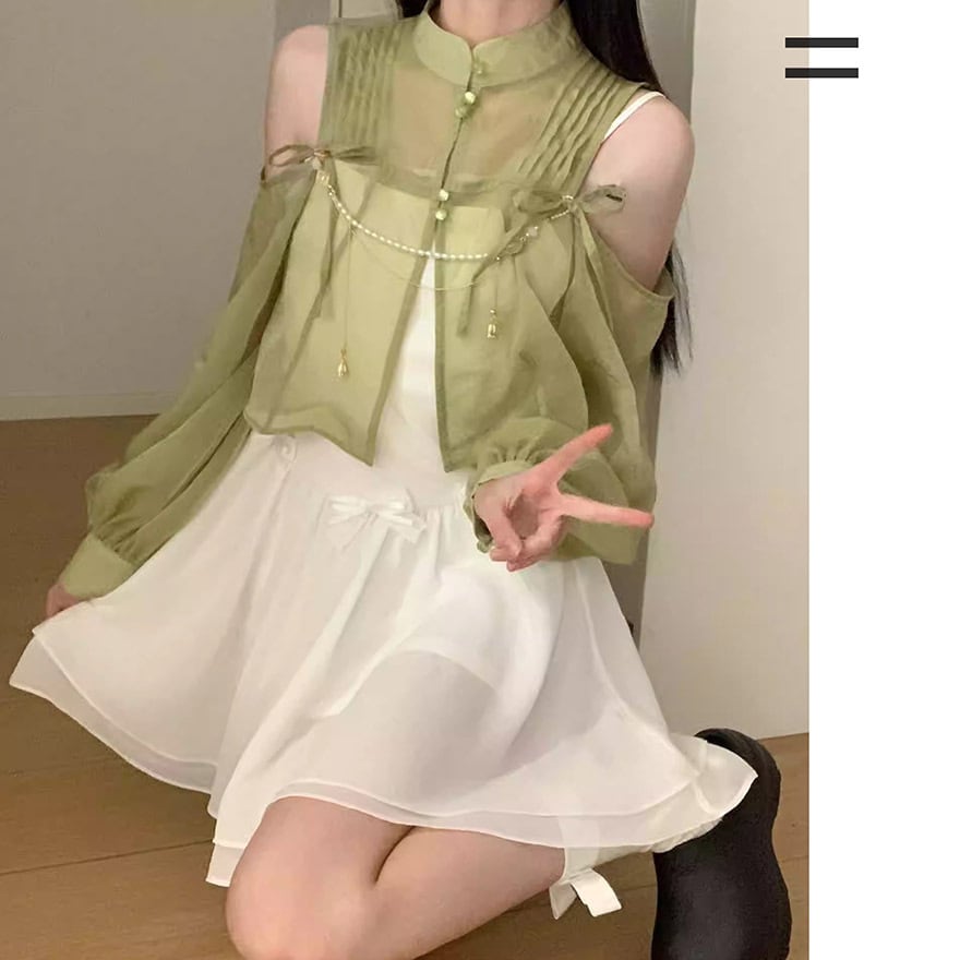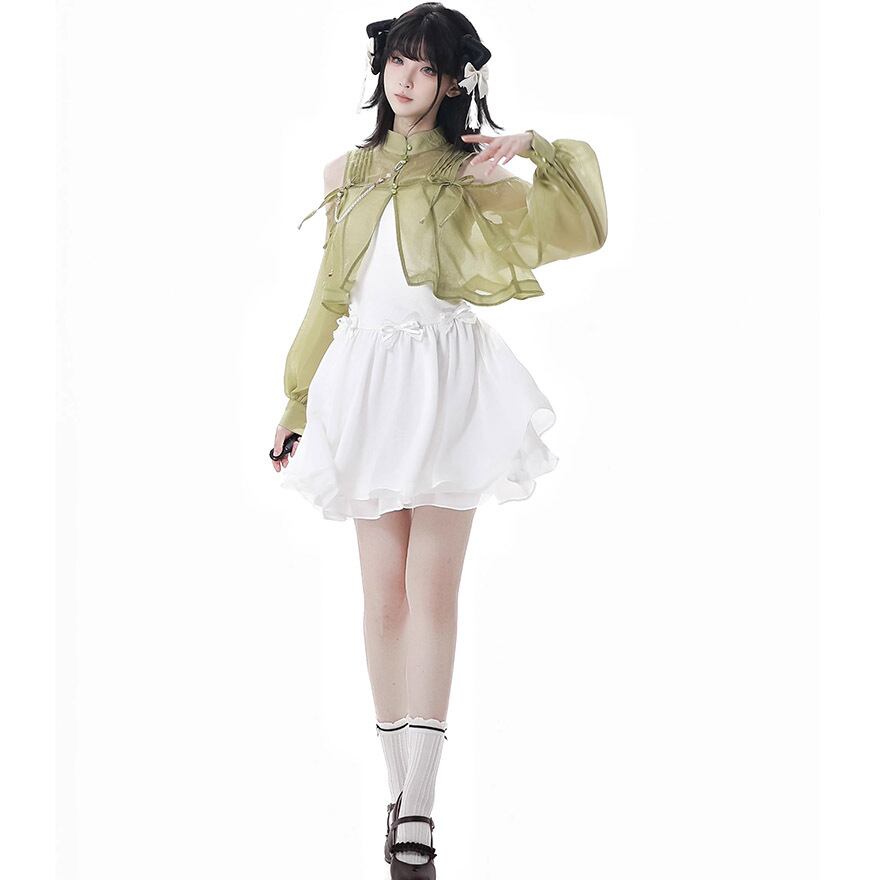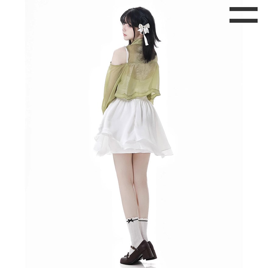 シアーなボレロやクロップド丈のシャツを羽織れば、一気にトレンド感のあるサブカルコーデが完成します。