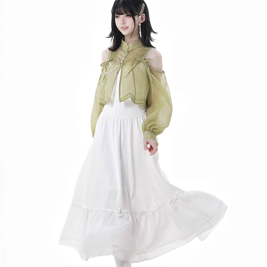 裾は軽やかなシアー素材を重ねた二重構造になっており、ふんわりとした透明感を演出。