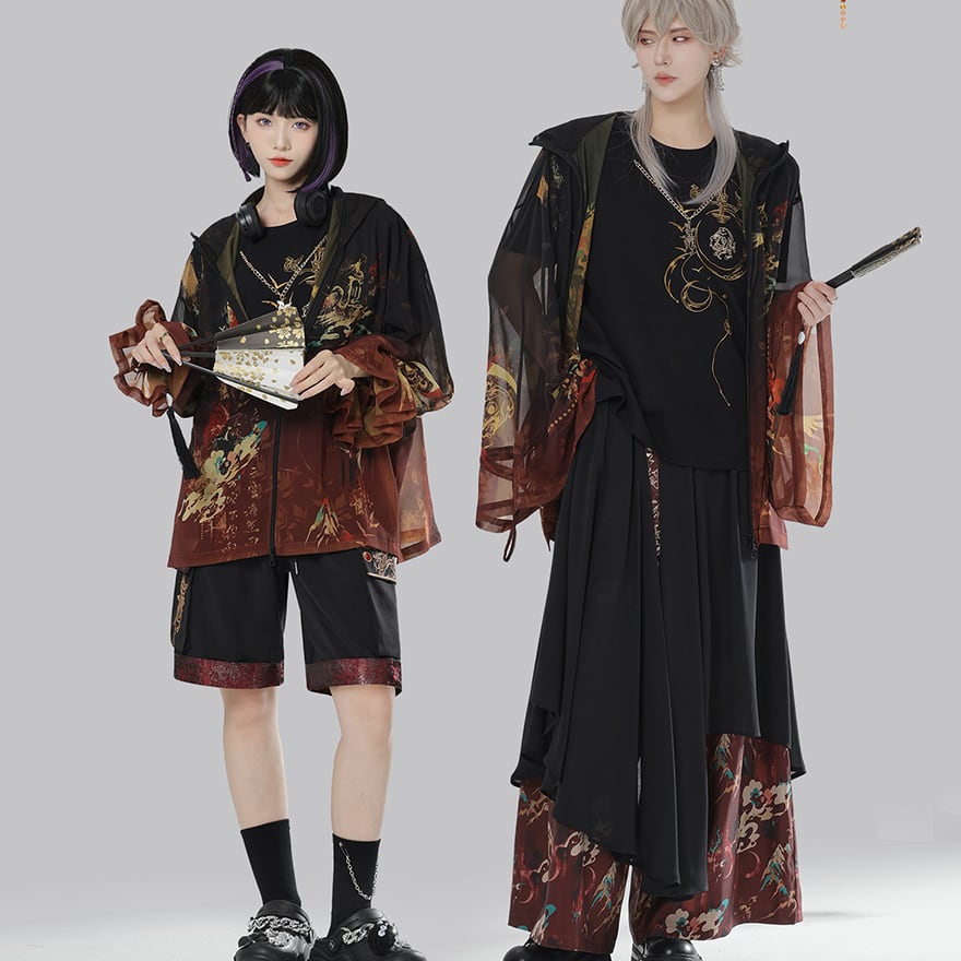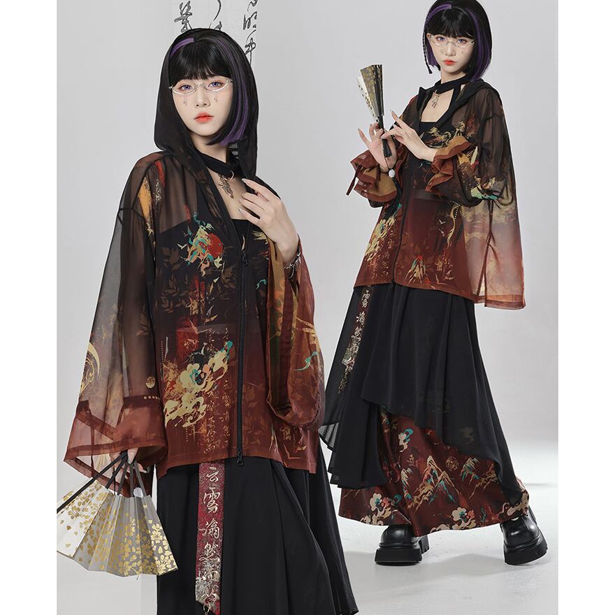 サブカル 服 地雷系 通販 チャイナ風服 カーディガン フード付き ユニセックス プリント柄 卿棠オリジナル 夏服