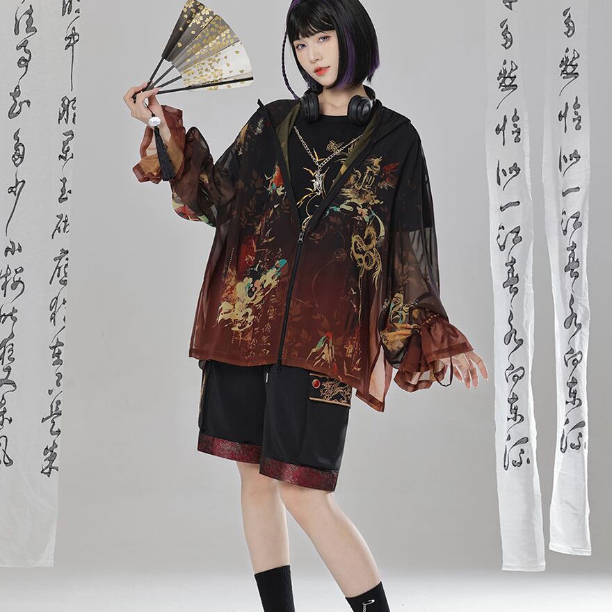 関連キーワード: #チャイナ風 #中華服 #カーディガン #パーカー #フーディ #羽織 #シアー #プリント #龍 #ドラゴン #ストリートファッション #Y2K #サブカル #ユニセックス #男女兼用 #卿棠 #山海経 #個性的 #夏服