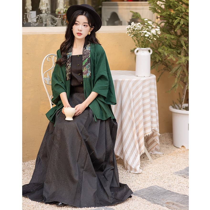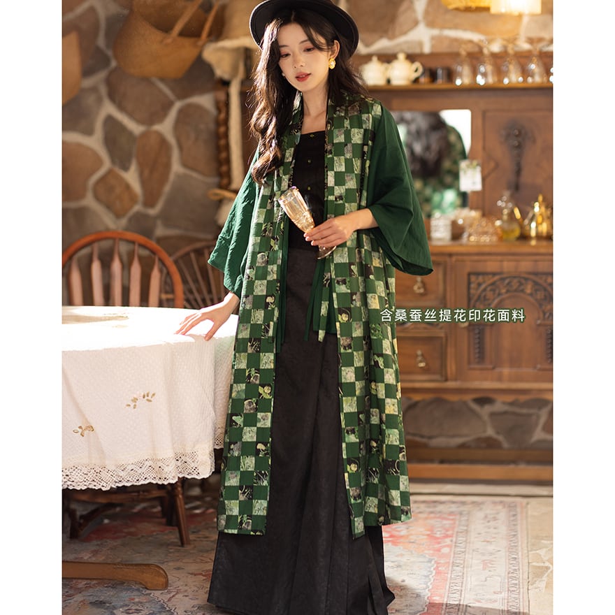 関連キーワード: #チャイナ風 #中華服 #ジレ #ロングベスト #羽織 #市松柄 #チェック柄 #レトロ #クラシカル #大正ロマン #Y2Kファッション #池夏 #グリーン #緑 #個性的 #レイヤード
