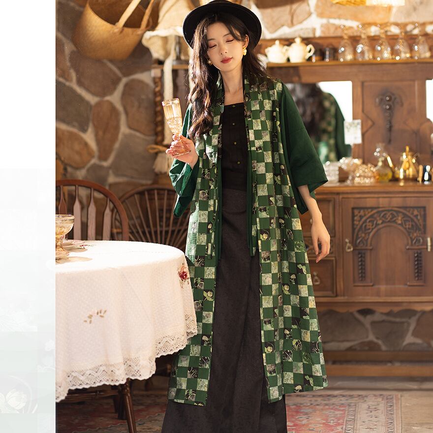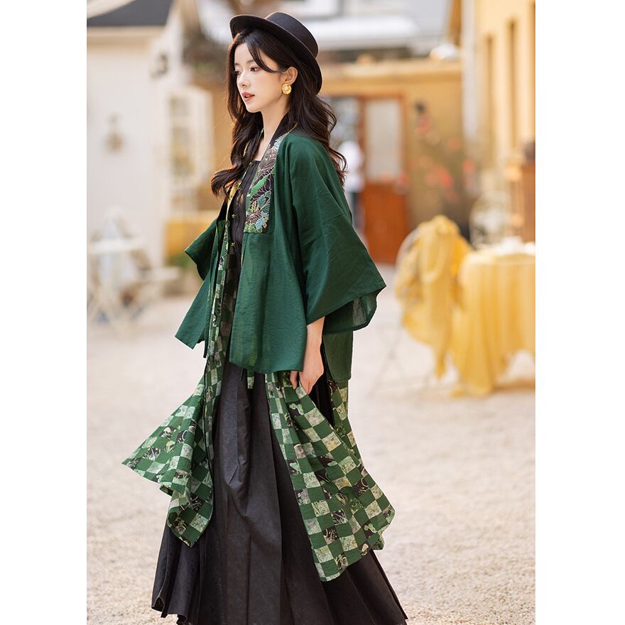 関連キーワード: #チャイナ風 #中華服 #羽織 #小羽織 #ショート丈 #ジャケット #刺繍 #花柄 #レトロ #クラシカル #Y2Kファッション #池夏 #グリーン #緑 #上品 #個性的