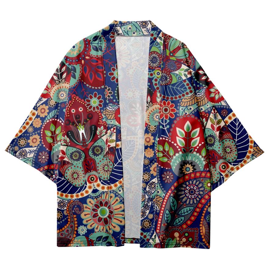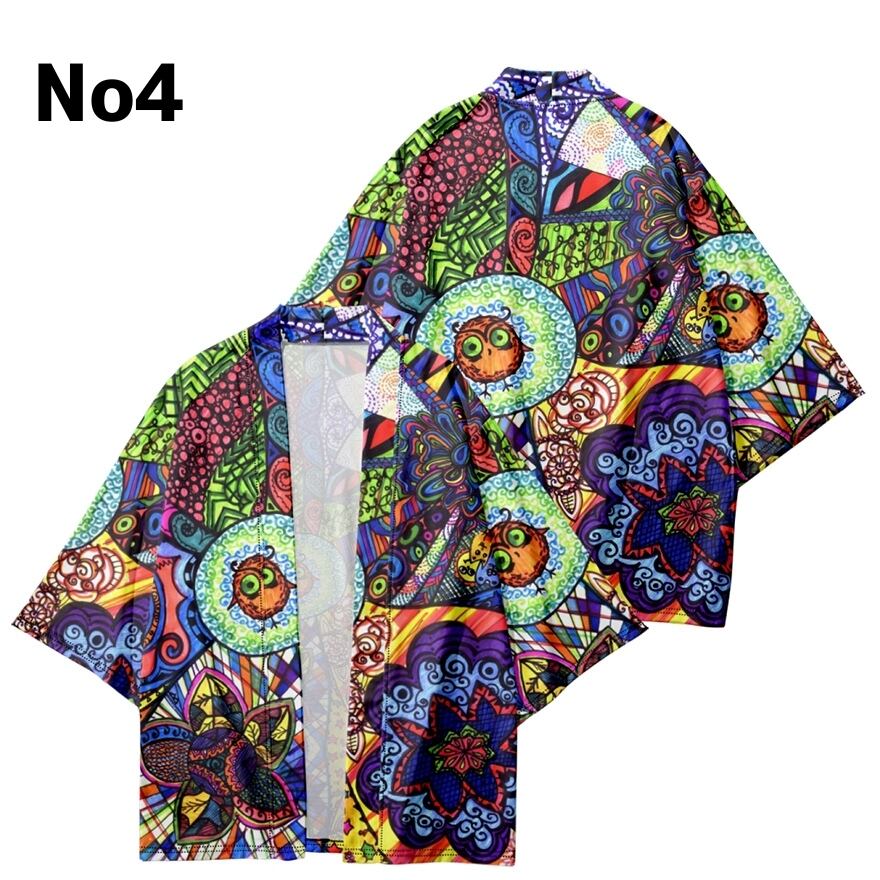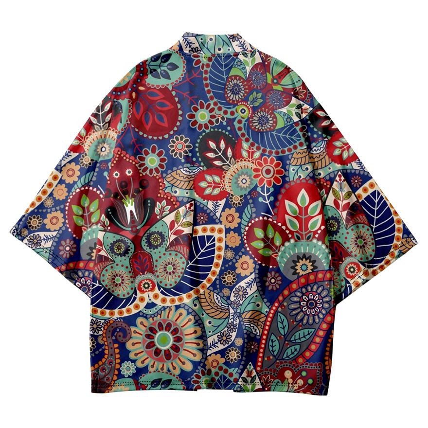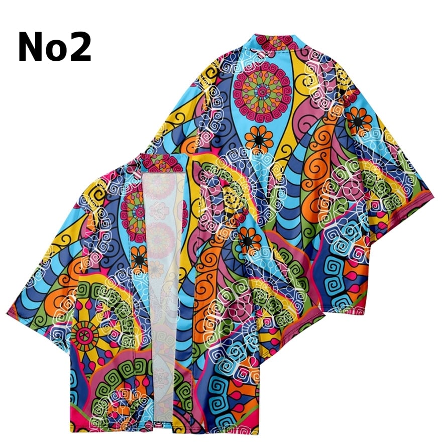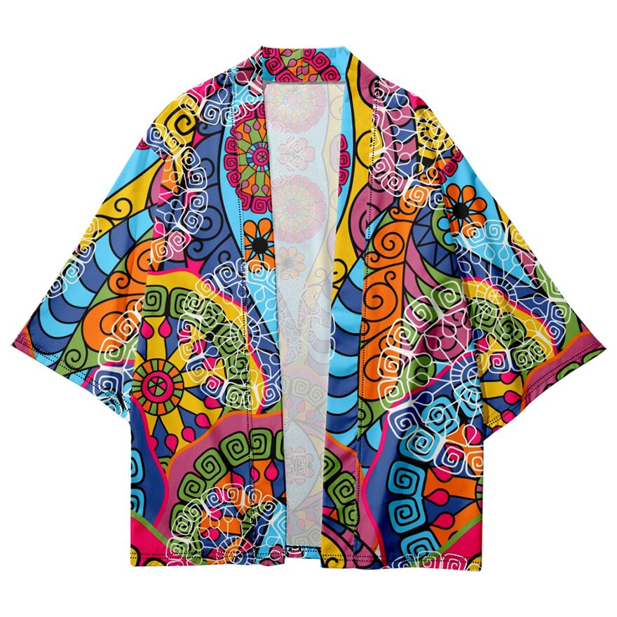 万華鏡を覗き込んだような、サイケデリックでアーティスティックな総柄が目を惹く羽織りです。