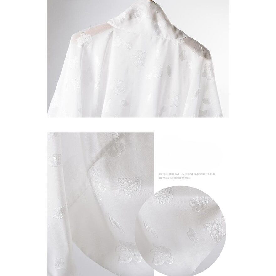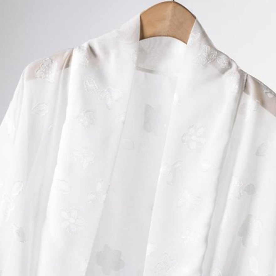 全体が美しい花柄の総レースでデザインされた、軽やかでエレガントな羽織りです。