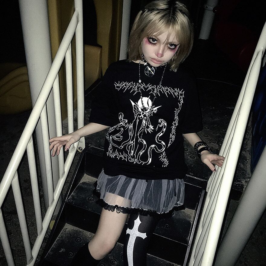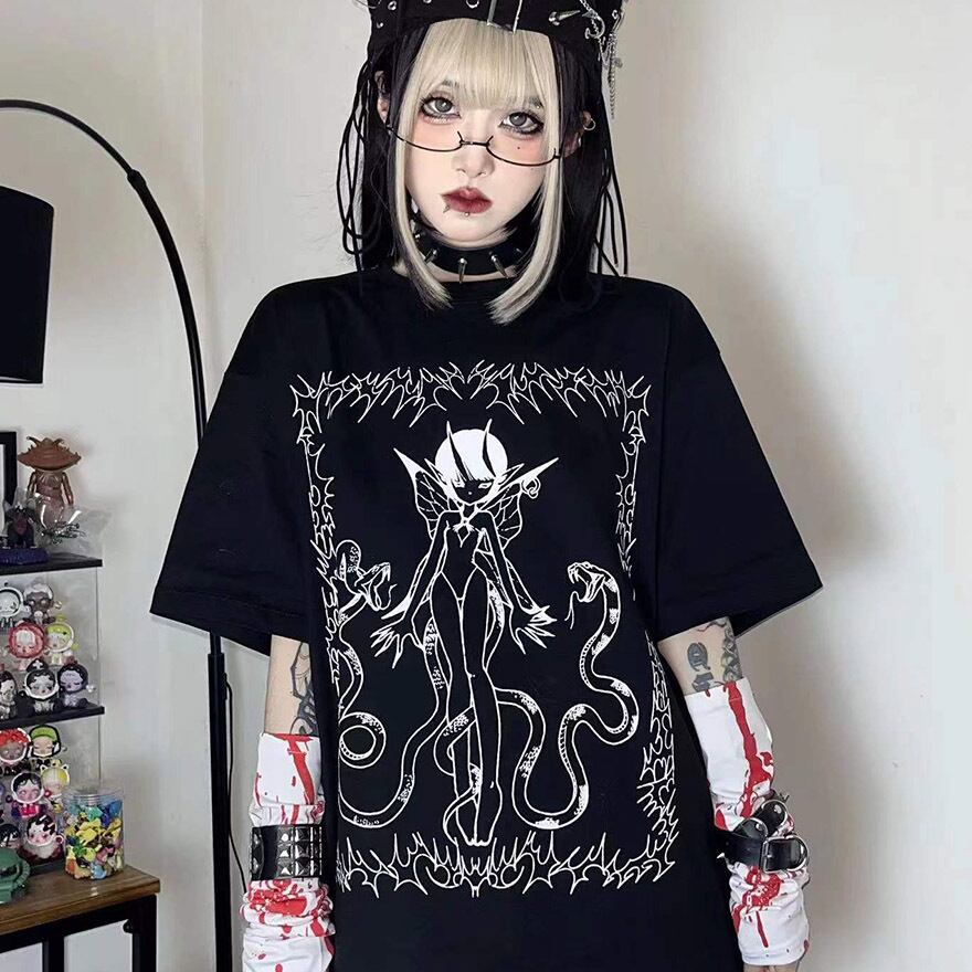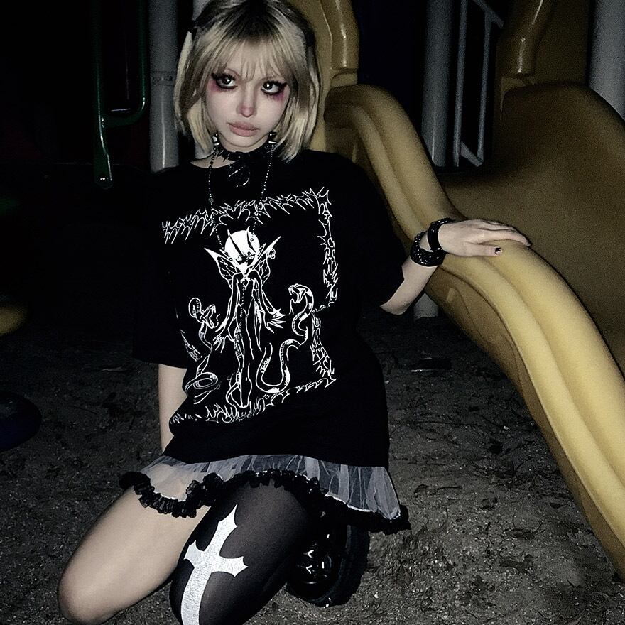 関連キーワード: #サブカル #地雷系 #ゴシック #V系 #Tシャツ #ストリートファッション #ダーク #オカルト #悪魔 #蛇 #闇かわいい #病みかわ #モノトーン #オーバーサイズ #ユニセックス