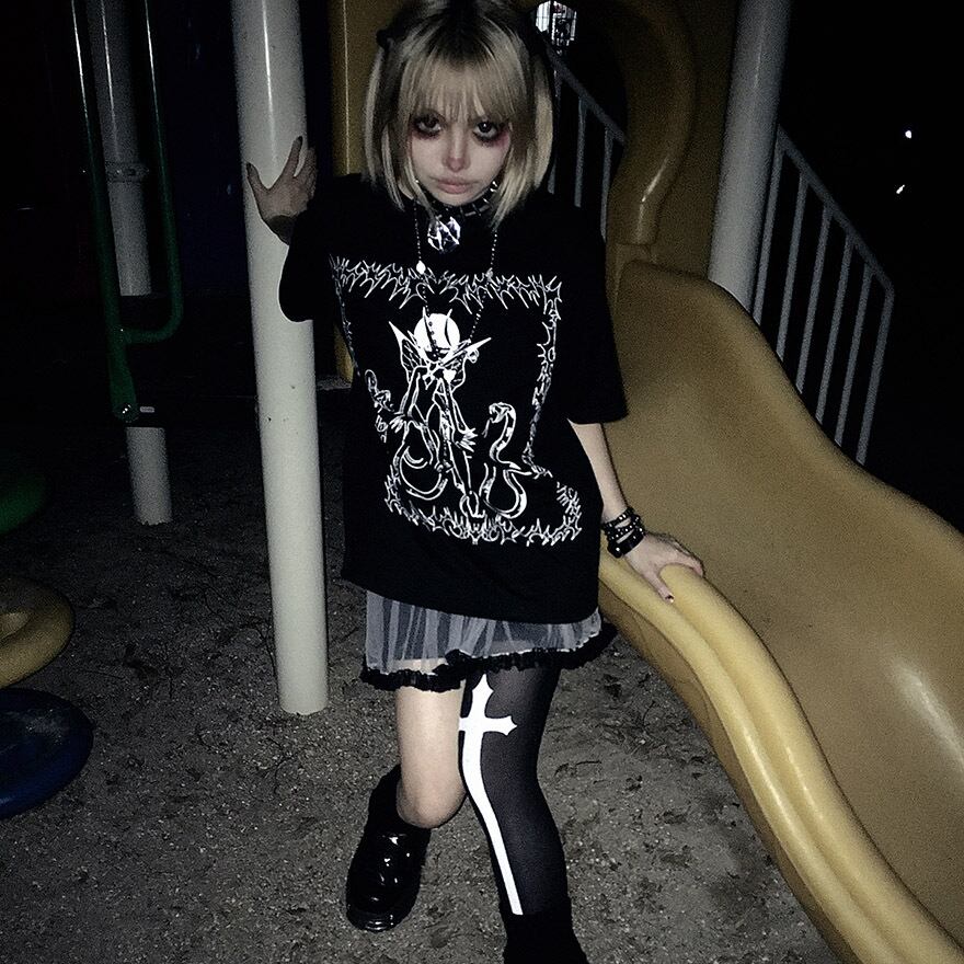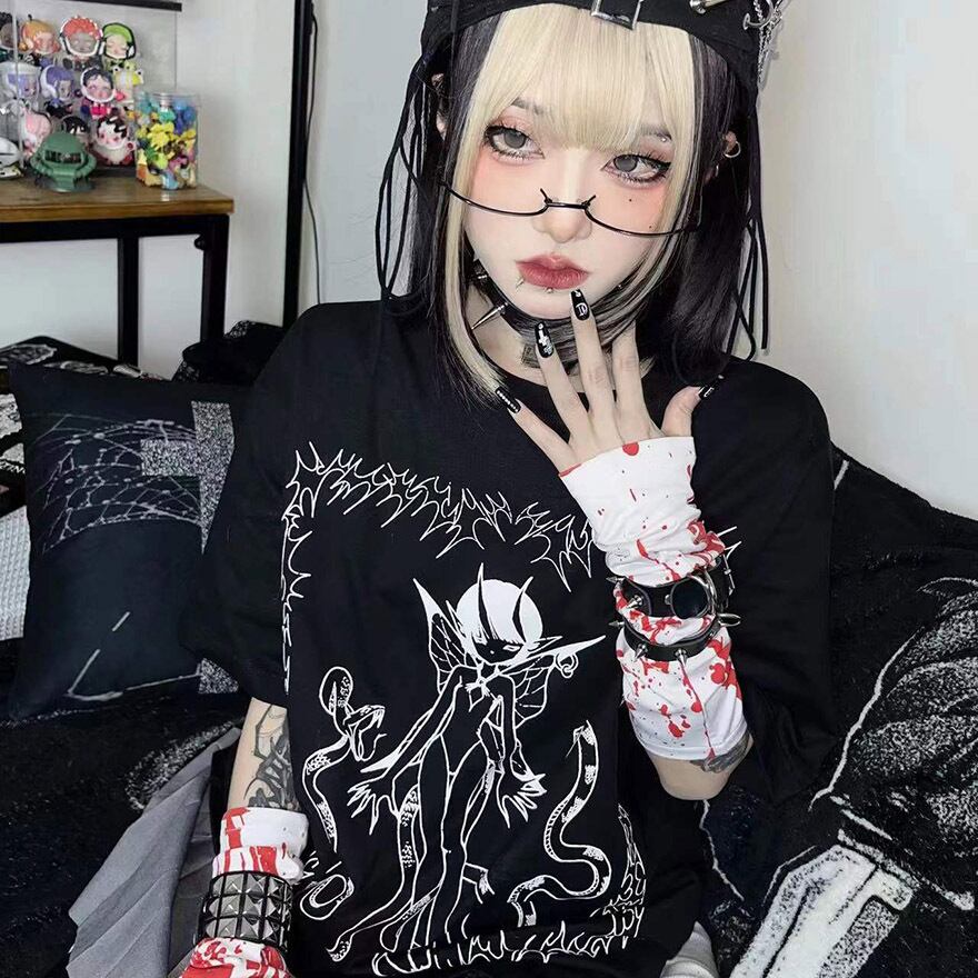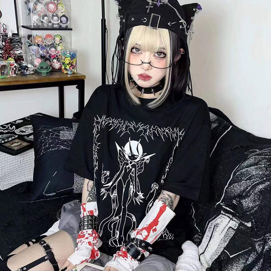 サブカル 服 地雷系 通販 Tシャツ イラスト プリント ダークファッション 闇かわいい
