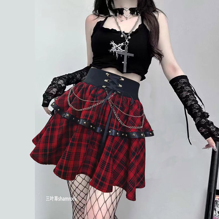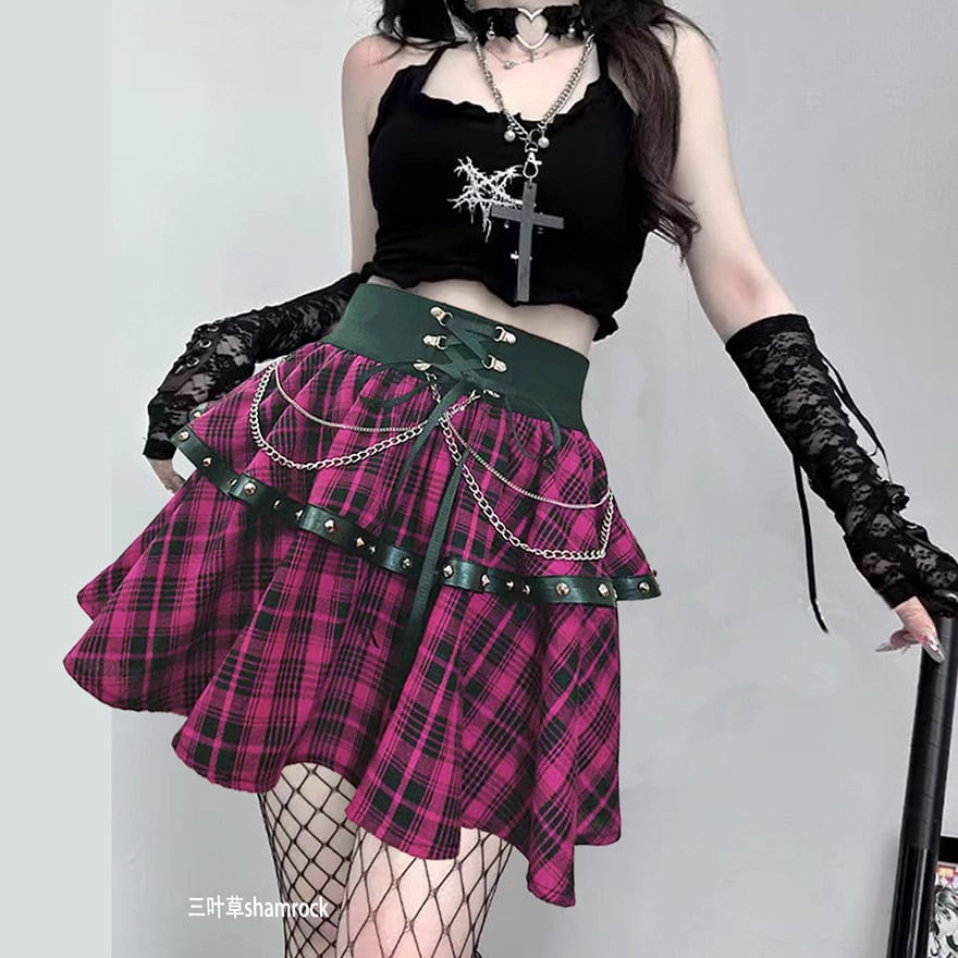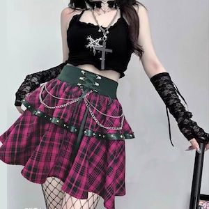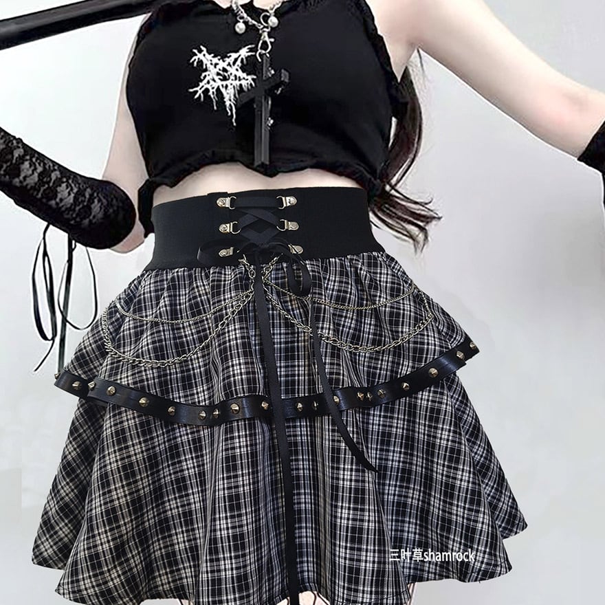 関連キーワード: #サブカル #地雷系 #ミニスカート #パンク #ゴシック #ロック #甘辛MIX #レースアップ #編み上げ #コルセット #チェーン #チェック柄 #ストリートファッション #可愛い #量産型
