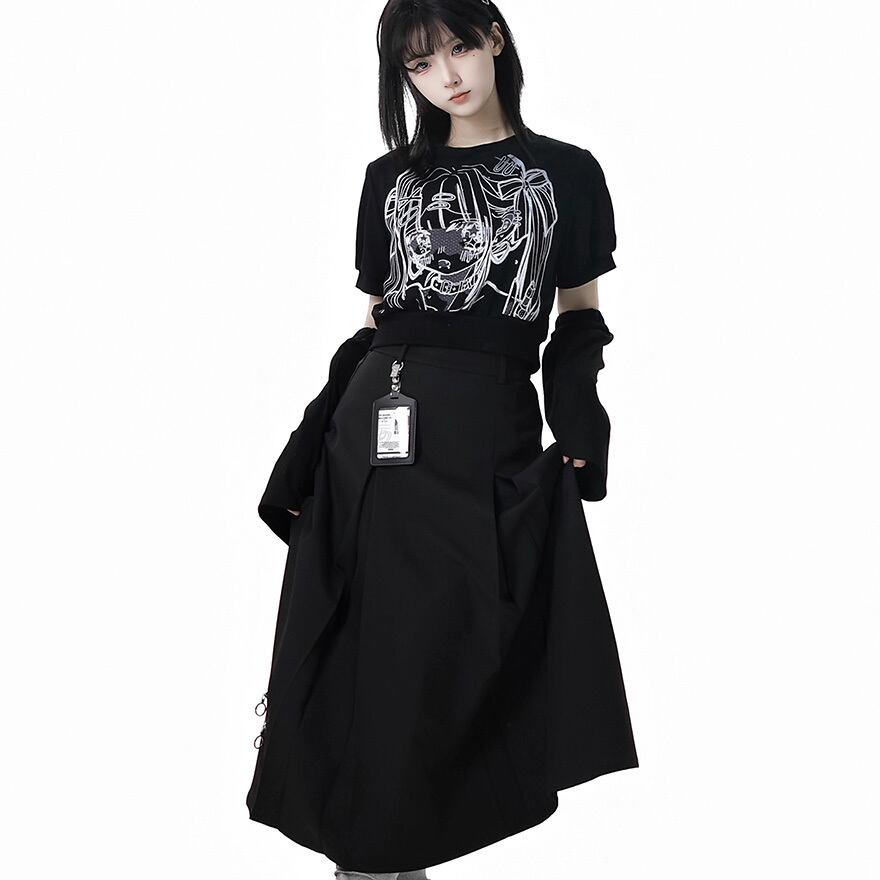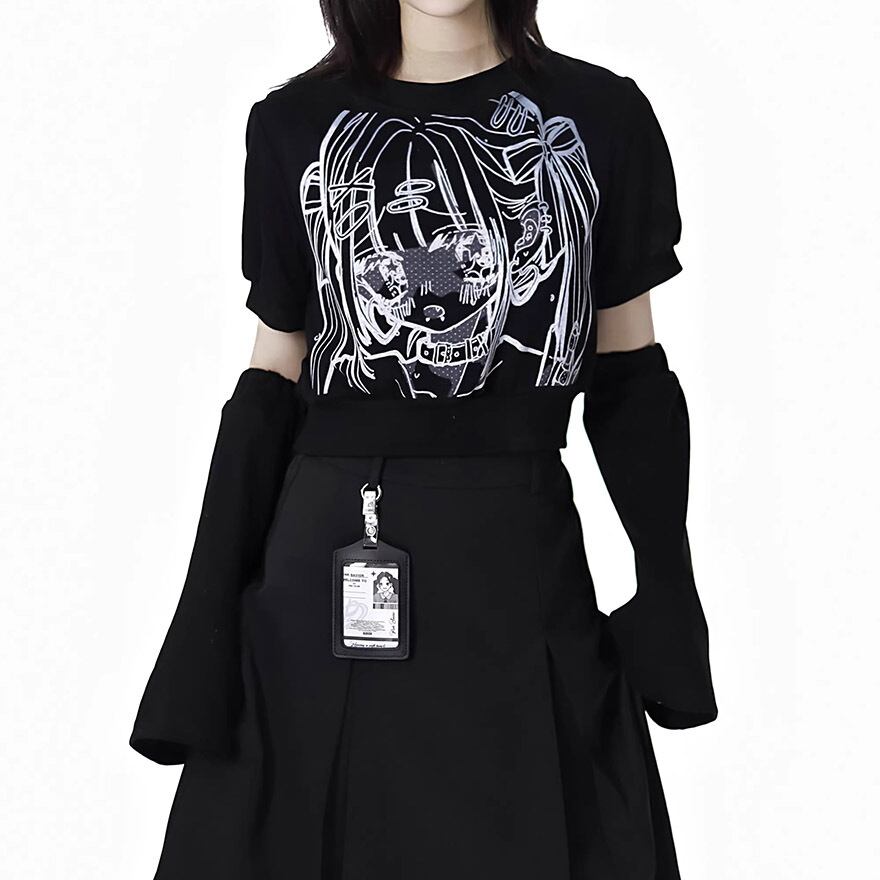 関連キーワード: #サブカル #地雷 #Tシャツ #クロップド丈 #アームカバー #継袖 #イラスト #アニメ #病みかわいい #闇かわいい #ストリートファッション #Y2K #サイバーパンク #モノトーン #ゴシック