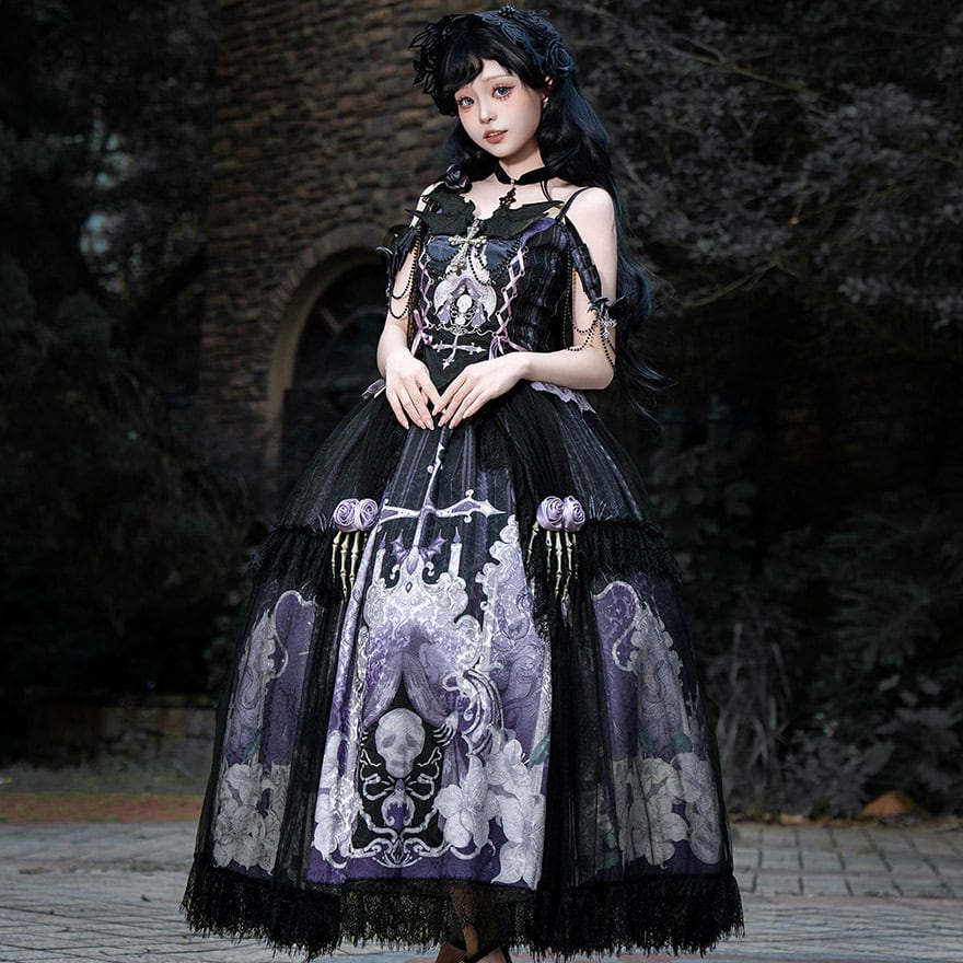 関連キーワード: #ゴスロリ #ゴシック #ロリータ #ドレス #ワンピース #黒 #紫 #スカル #髑髏 #十字架 #退廃 #ダーク #ロングドレス #イベント衣装 #撮影会 #ハロウィン #V系