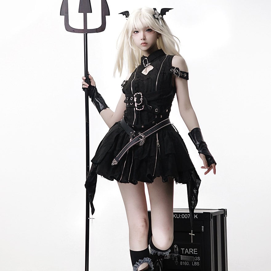 関連キーワード: #ロリパン #パンク #ロック #ゴシック #ワンピース #地雷系 #サブカル #黒 #ブラック #ライブ衣装 #ステージ衣装 #V系 #甘辛ミックス #ハーネス #ジッパー #アシンメトリー #戦闘服