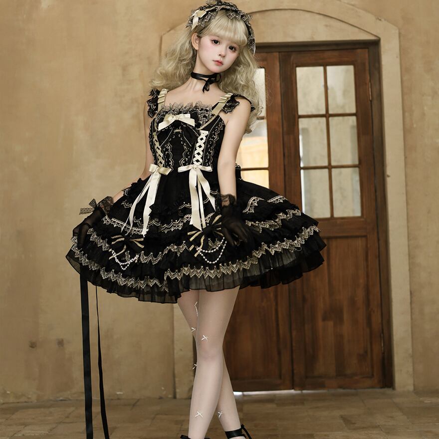 サブカル 服 地雷系 通販 ロリィタドレス バックリボン レース 編み上げ プリンセスドレス ふんわり