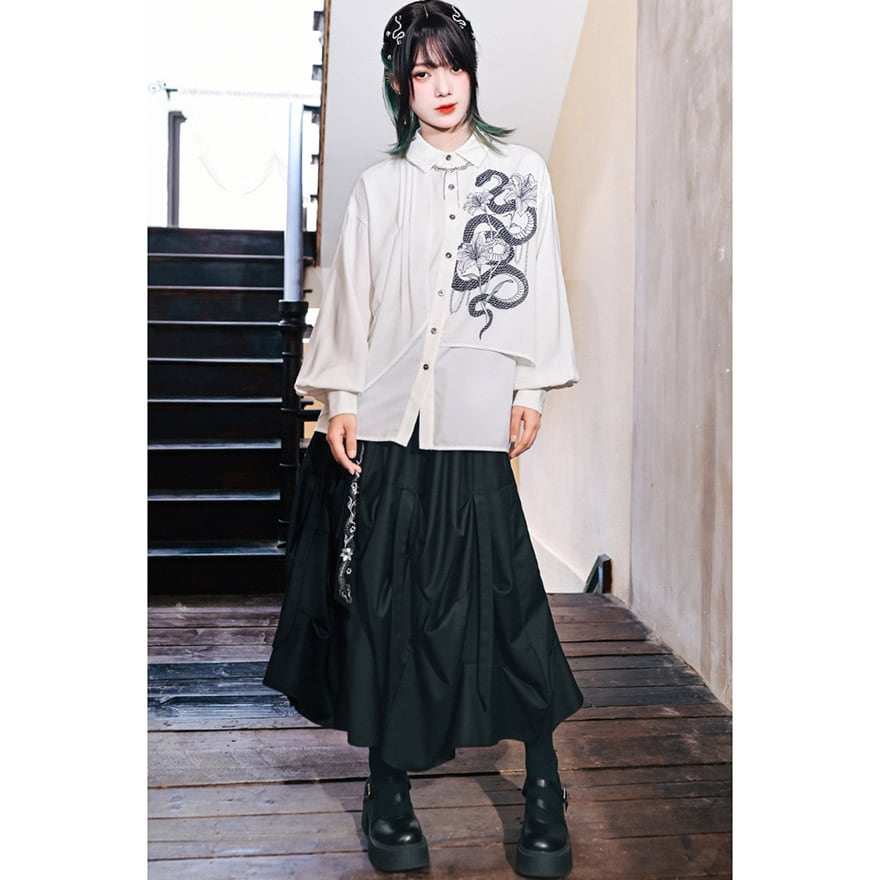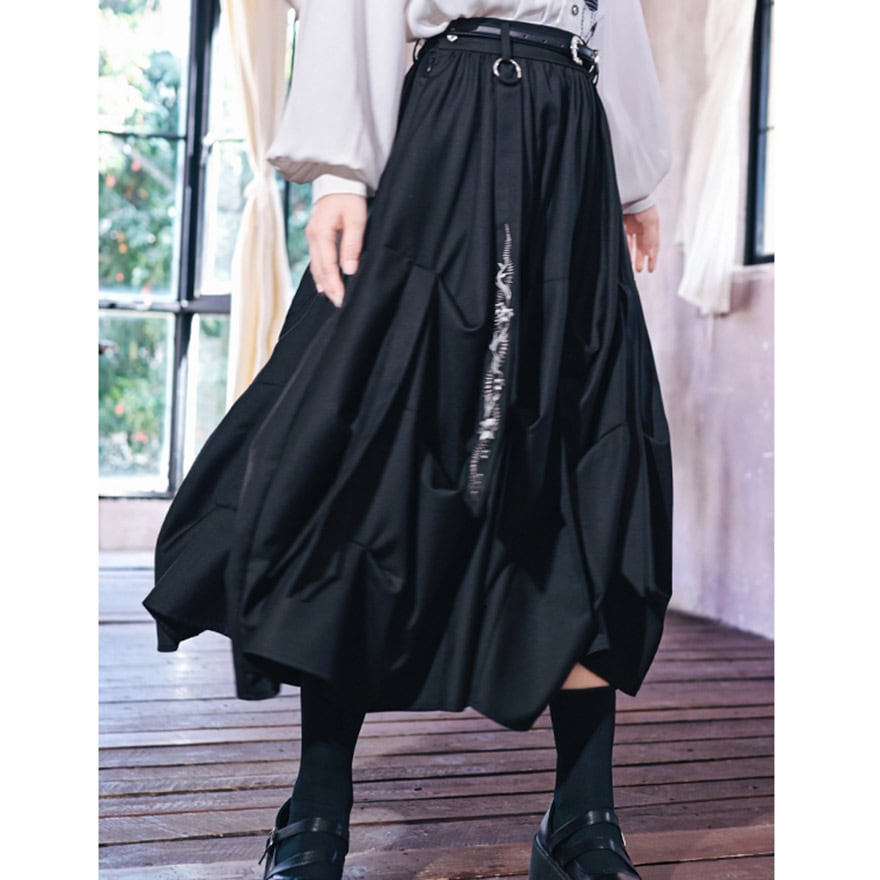 関連キーワード: #チャイナ #中華風 #チャイナスカート #サブカル #モード #ゴシック #プリーツスカート #変形スカート #ロングスカート #刺繍 #個性的 #黒 #ブラック #参戦服