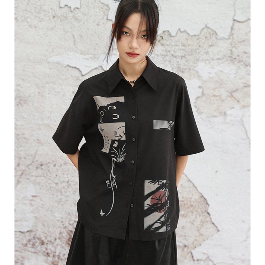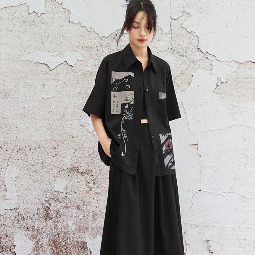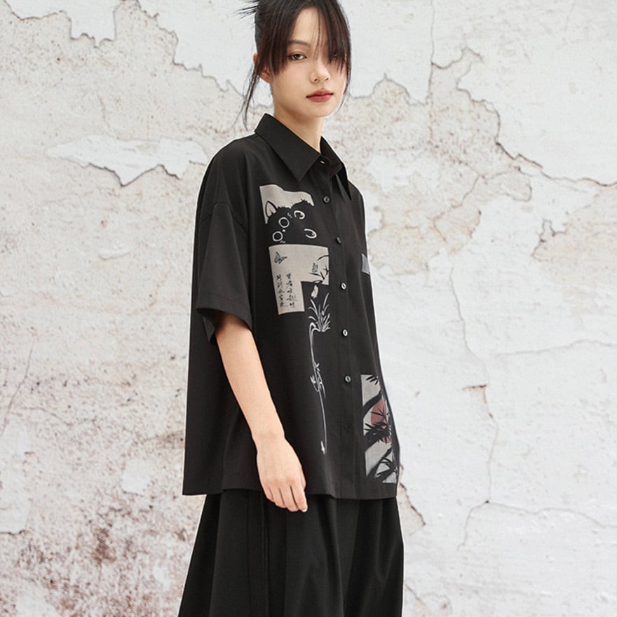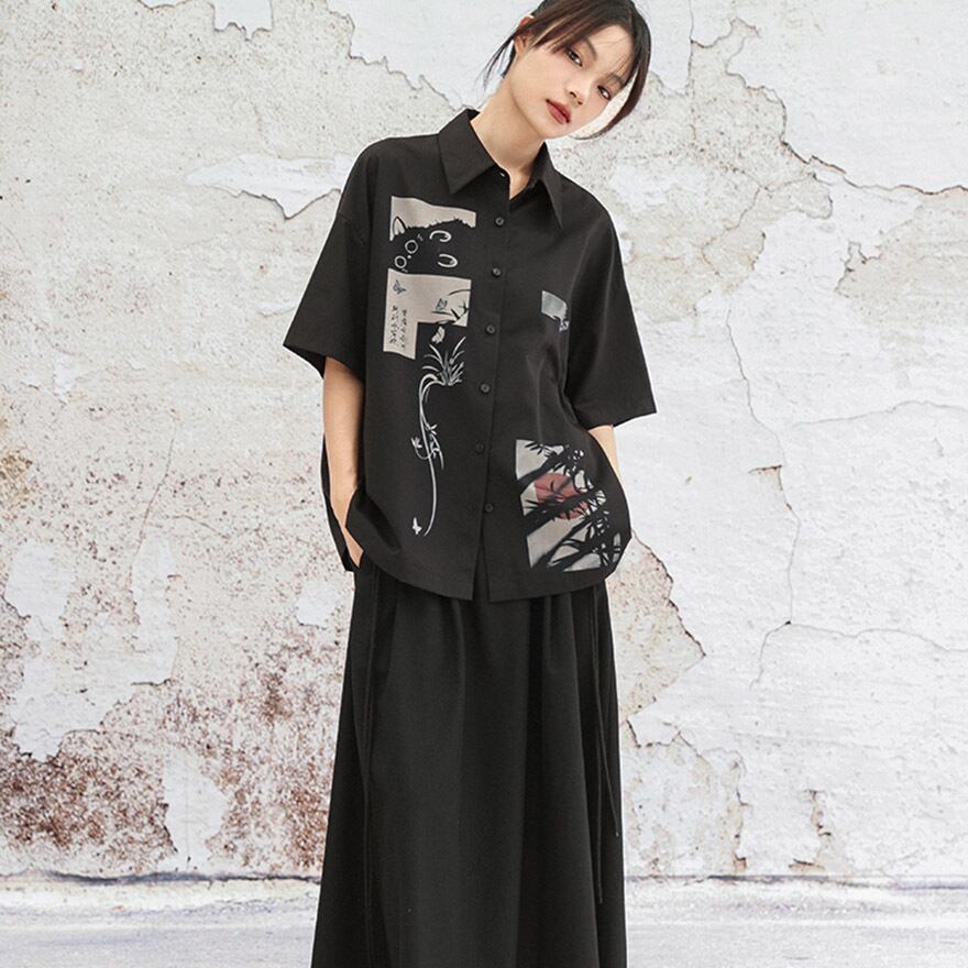 関連キーワード: #チャイナ #中華風 #チャイナシャツ #サブカル #モード #和柄 #シャツ #半袖 #プリント #猫 #キャット #個性的 #ユニセックス #黒 #ブラック #参戦服 #夏服