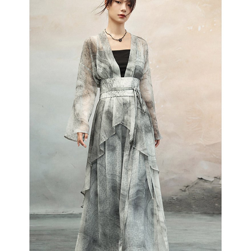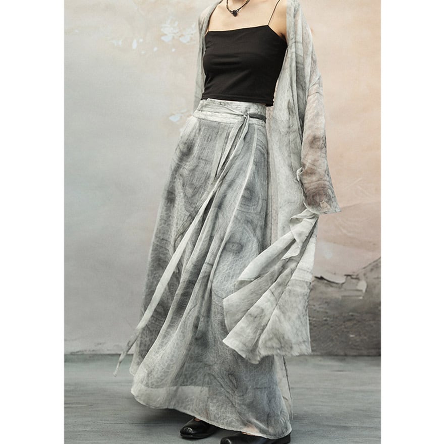 関連キーワード: #チャイナ #中華風 #和風 #ロングスカート #マキシスカート #シアー #シースルー #水墨画柄 #マーブル柄 #モード #サブカル #モノトーン #個性的 #参戦服 #夏服 #レトロ #セットアップ
