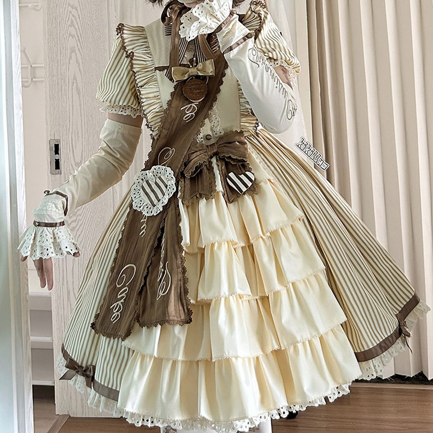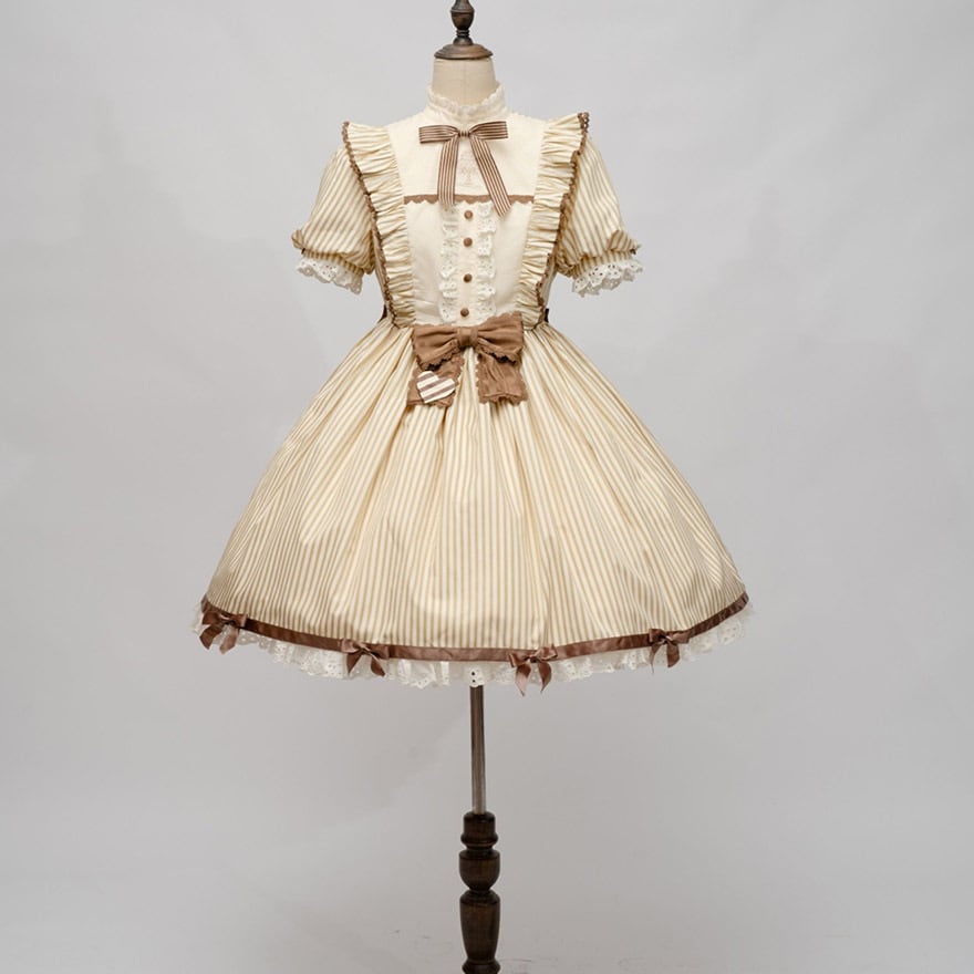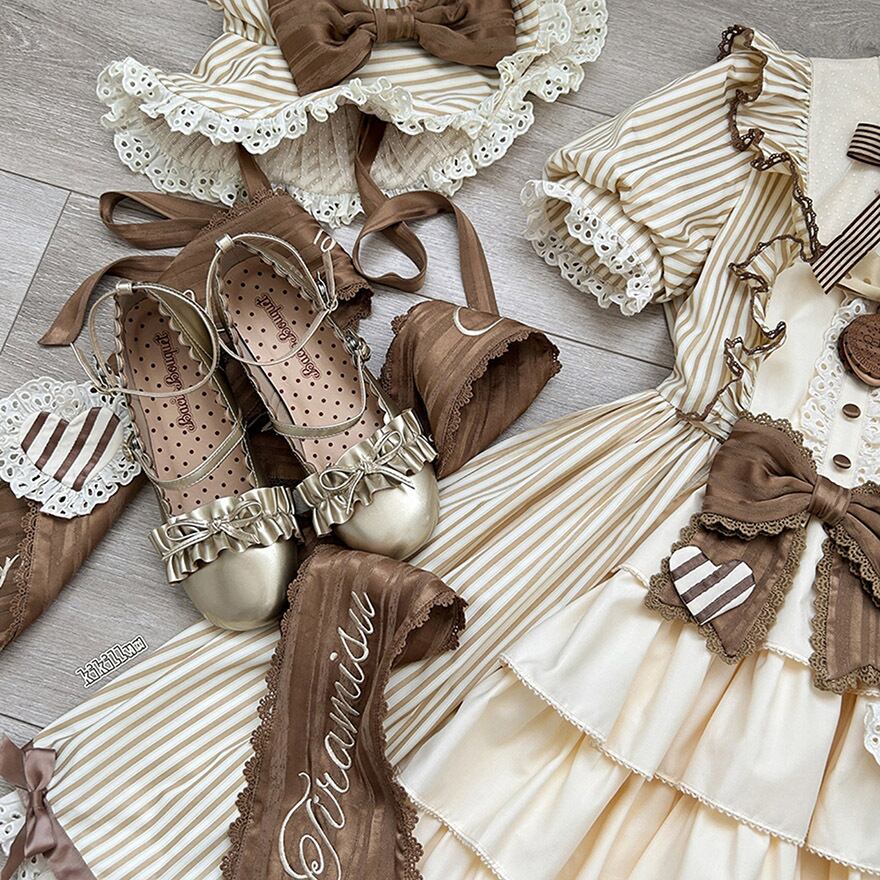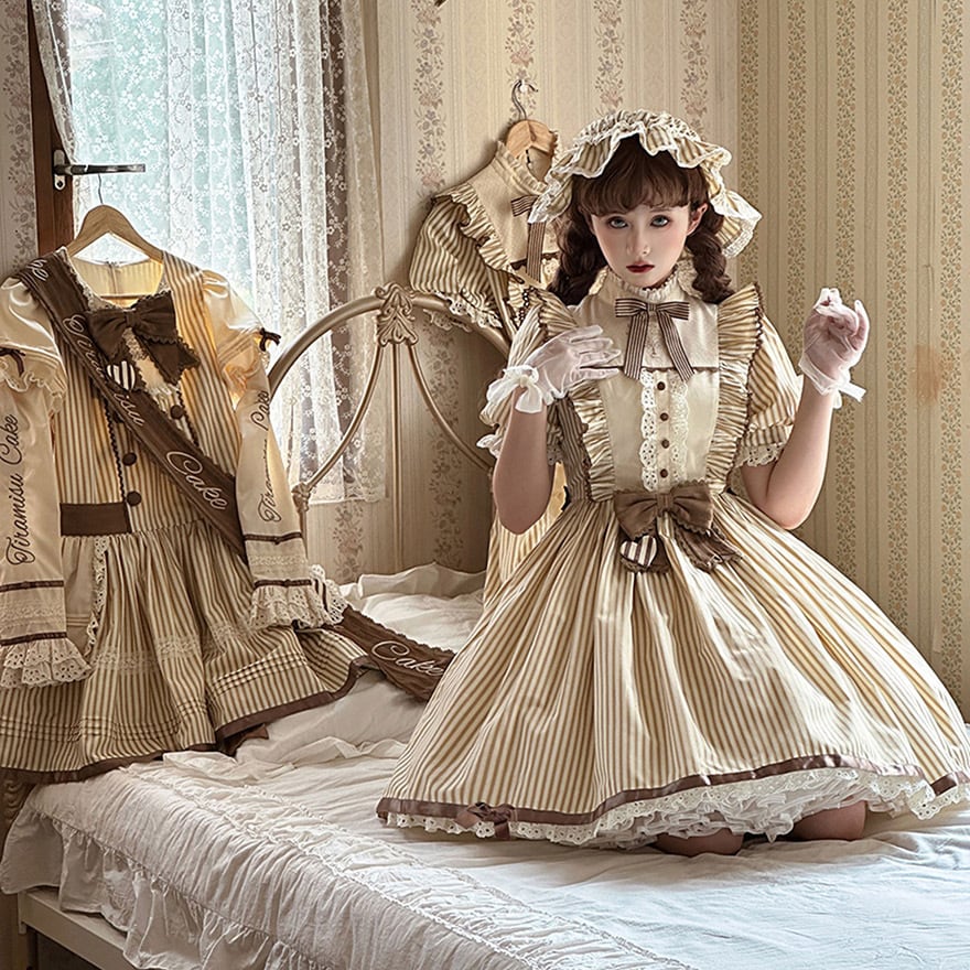 チョコレートとバニラクリームを思わせるストライプ柄が、甘くクラシカルなムードを漂わせるロリィタワンピースです。