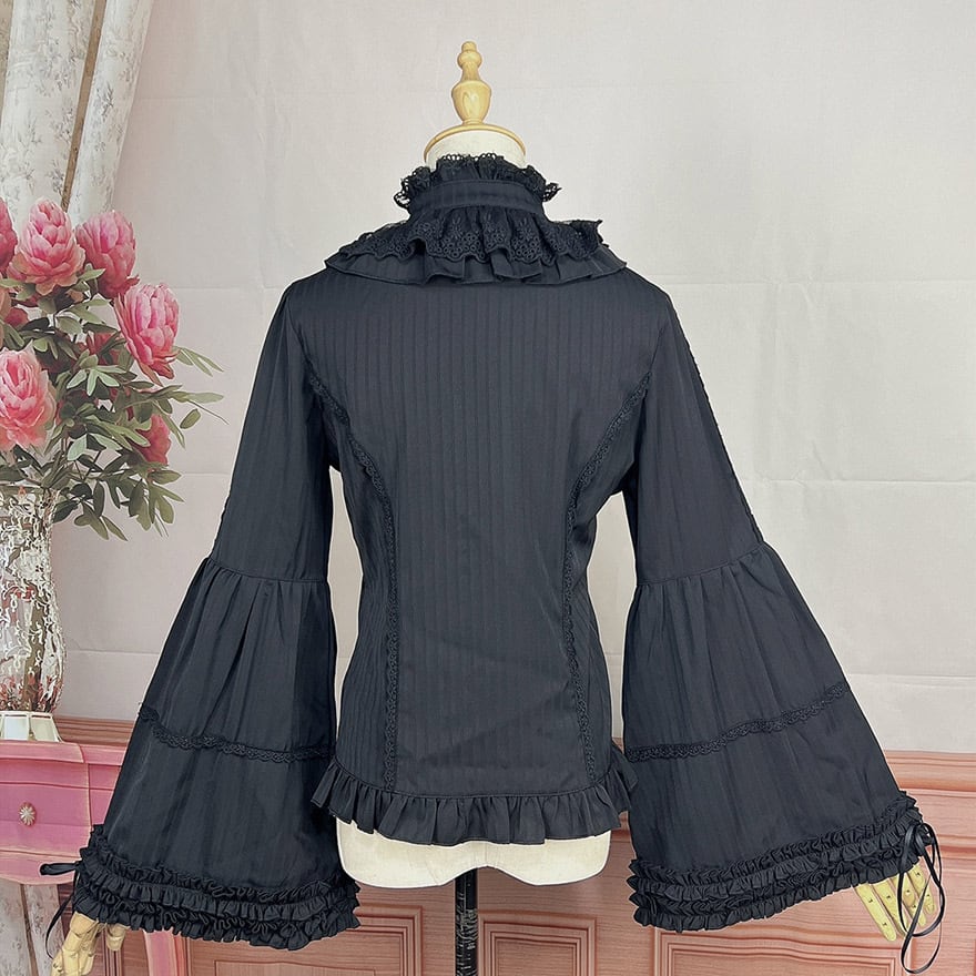 関連キーワード: #ゴスロリ #ロリータファッション #クラロリ #姫袖 #ブラウス #トランペットスリーブ #スタンドカラー #フリル #レース #エレガント #可愛い