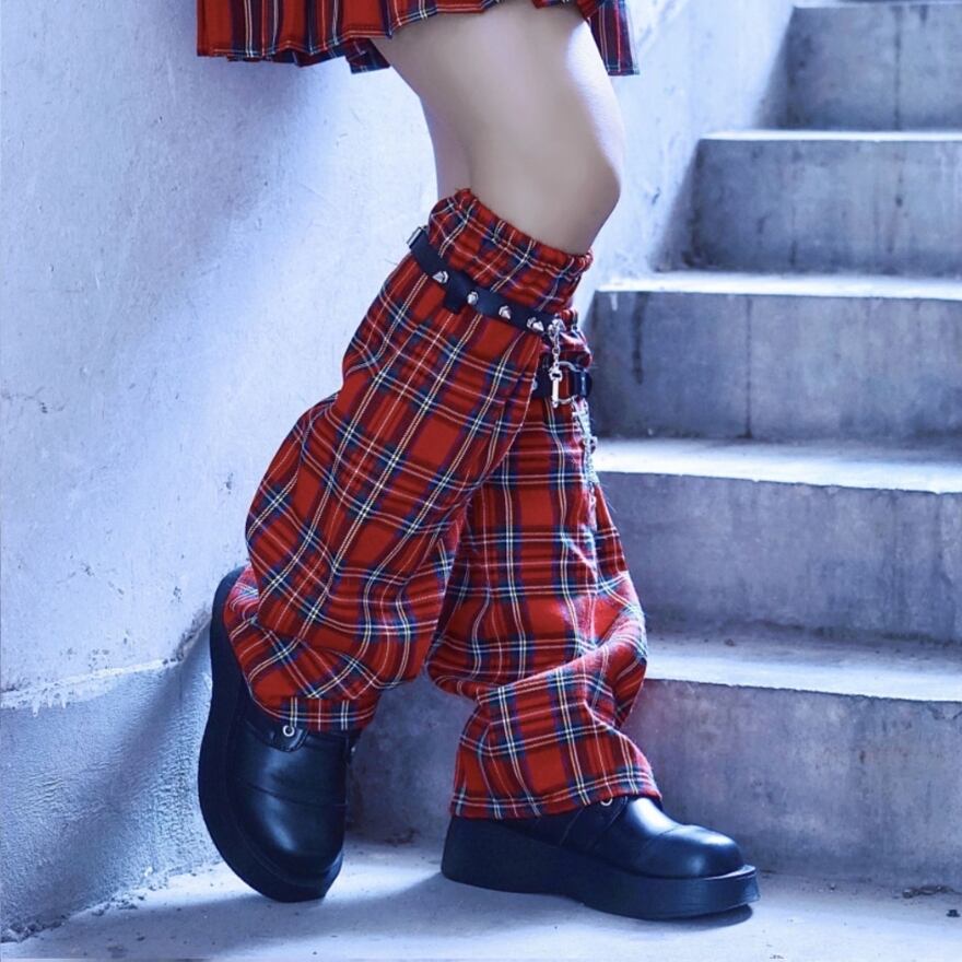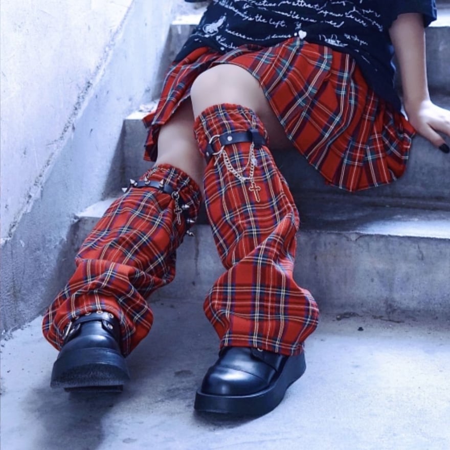 足元から放つ、パンクなエッセンスが効いたチェック柄レッグカバー。
