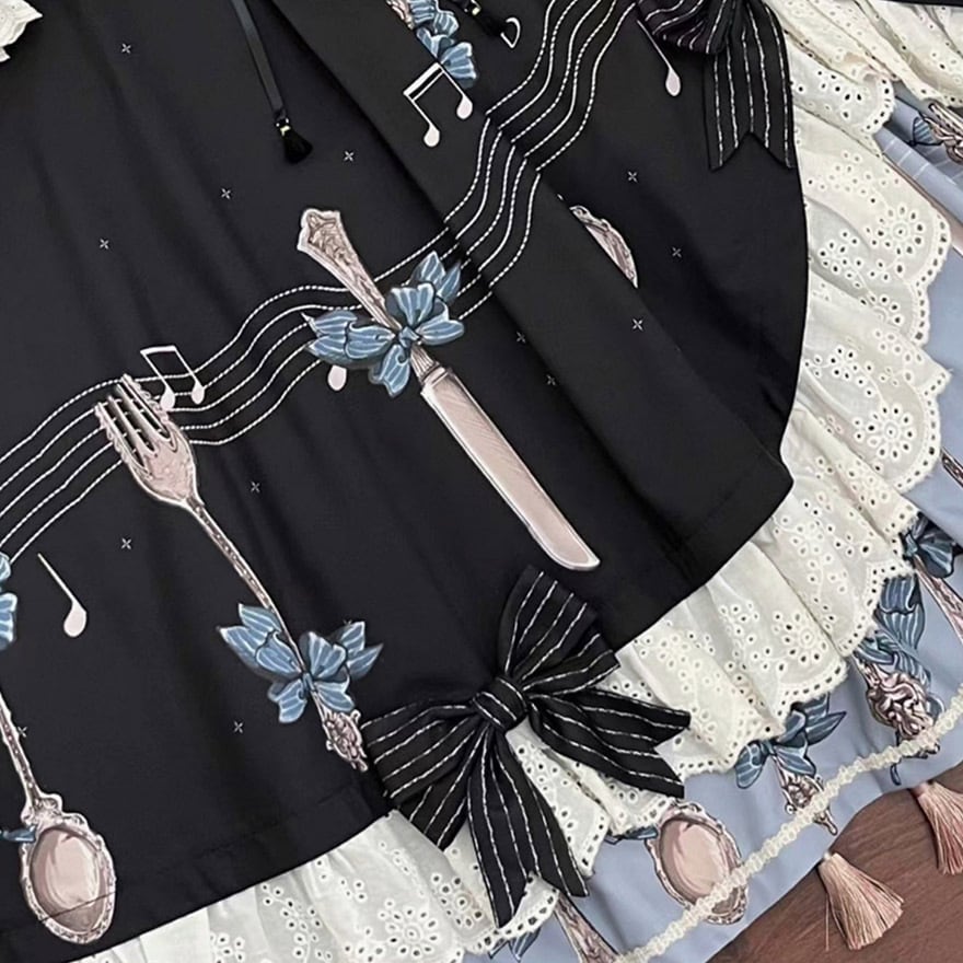 ダークな色合いの中に散りばめられた音楽モチーフと、たっぷりのフリル&レースが絶妙なバランスで、一枚で物語の主人公になったような気分を味わえます。