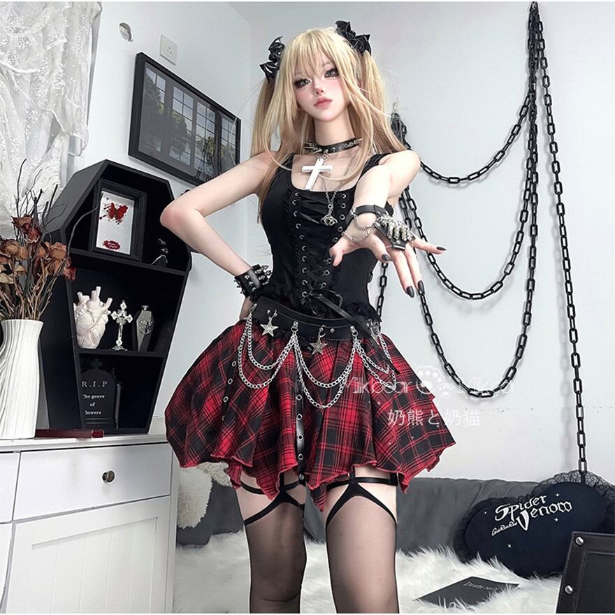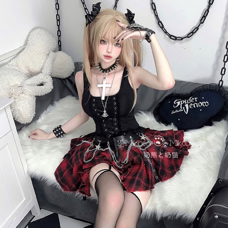 関連キーワード: #地雷系 #サブカル #パンク #ロック #V系 #参戦服 #セットアップ #ミニスカート #チェック柄 #チェーン #かっこいい #セクシー