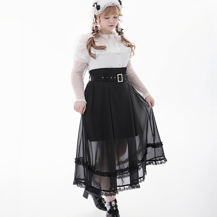 デコルテと袖の透け感が目を引く、ゴシックテイストのブラウスです。
