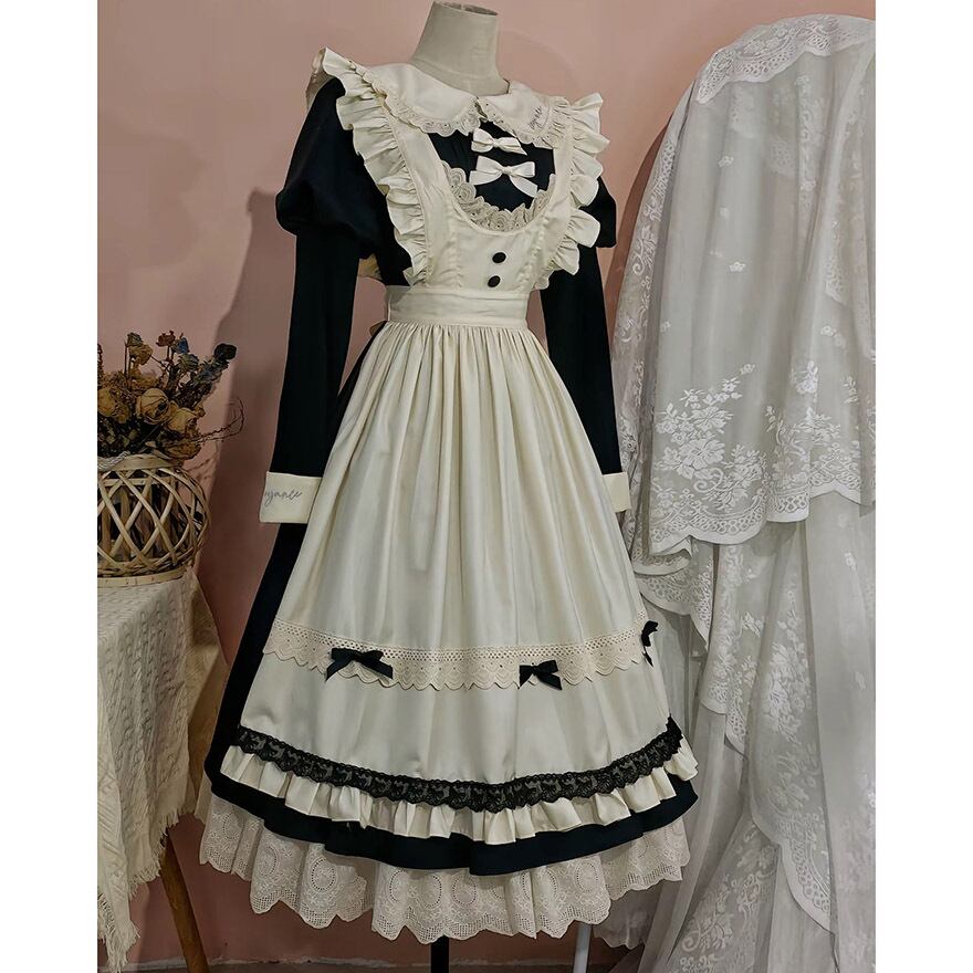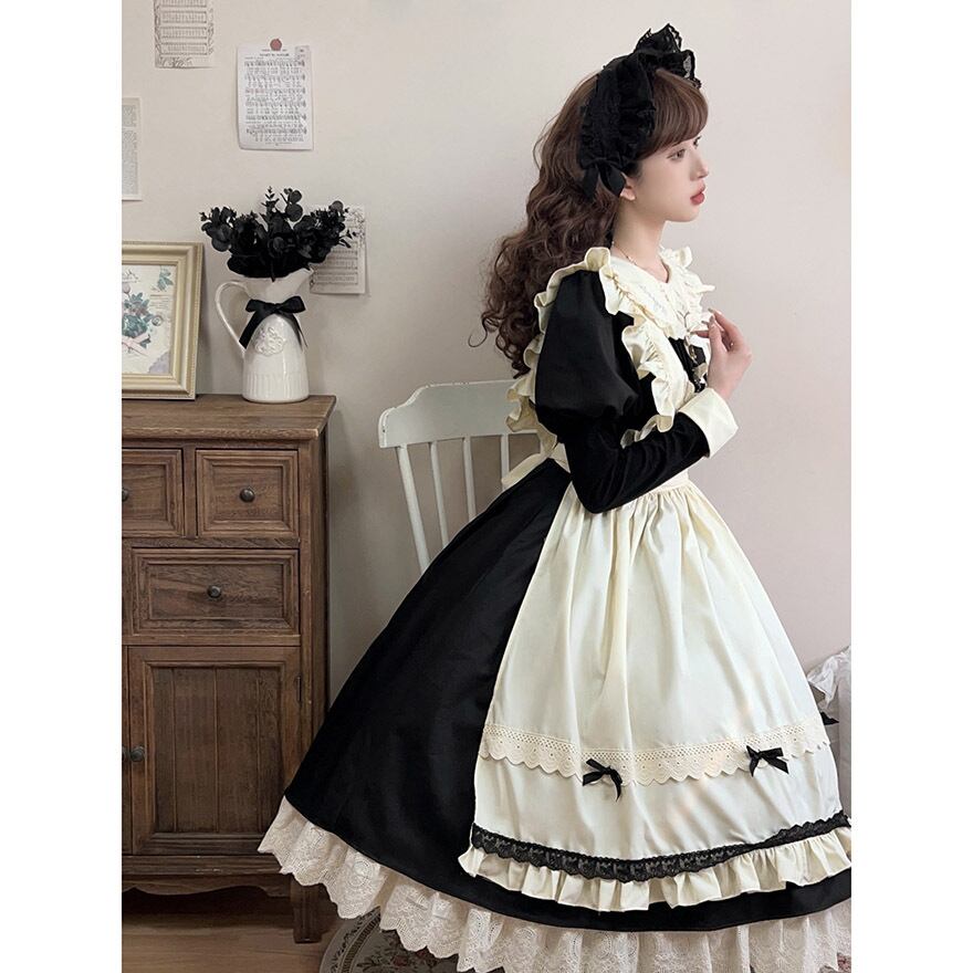 【納期45日】クラシカルメイド服 ワンピース エプロン リボン ロング丈 英国風 ヴィクトリアン風 イベント衣装 コンカフェ メイドカフェ