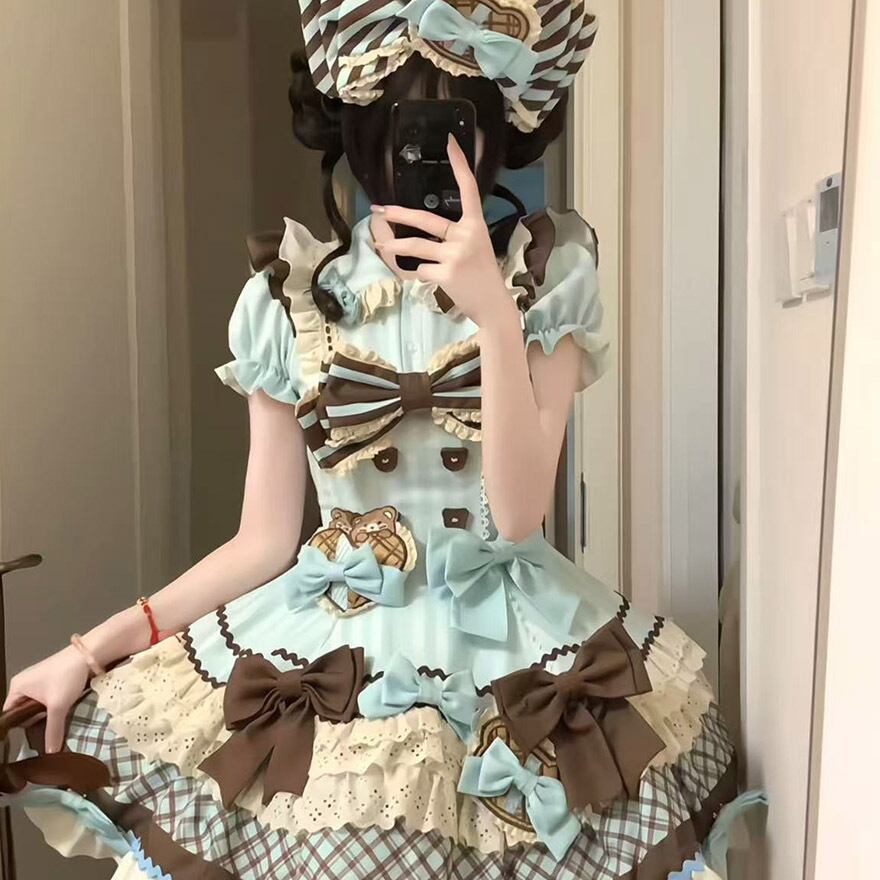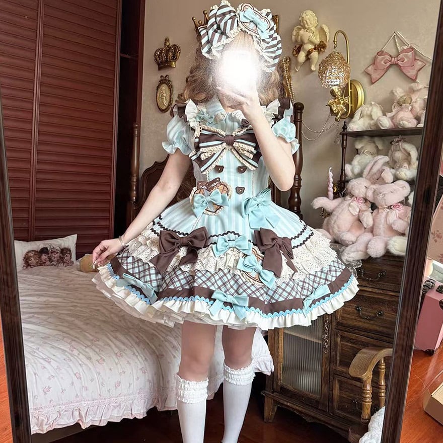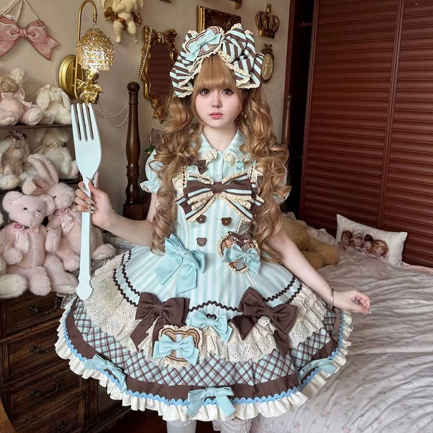 関連キーワード: #ロリータ #甘ロリ #ワンピース #夢かわいい #くま #チョコレート #スイーツ #ストライプ #リボン #フリル #可愛い