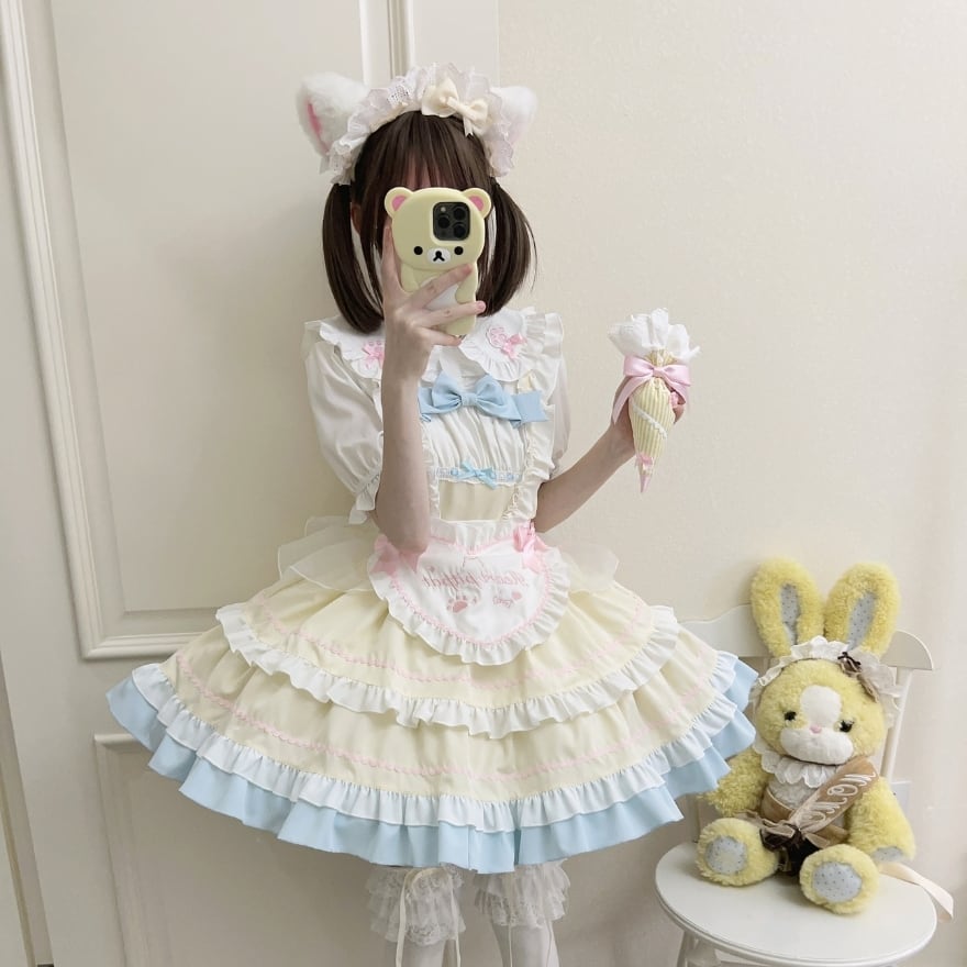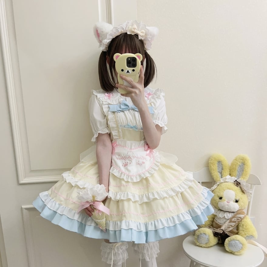 関連キーワード: #ロリィタ #メイド服 #フレンチメイド #甘ロリ #ゆめかわ #パステルカラー #フリル #ティアード #リボン #可愛い #セットアップ