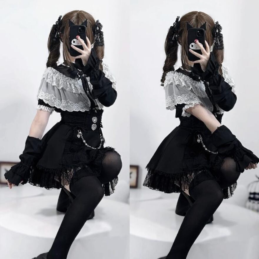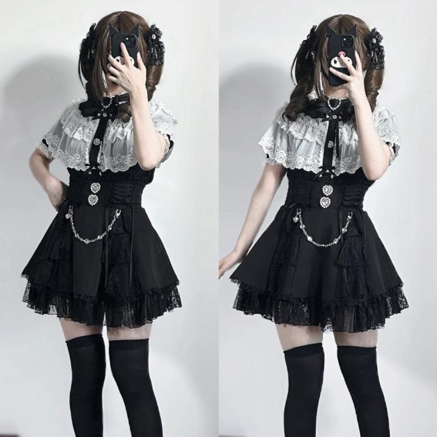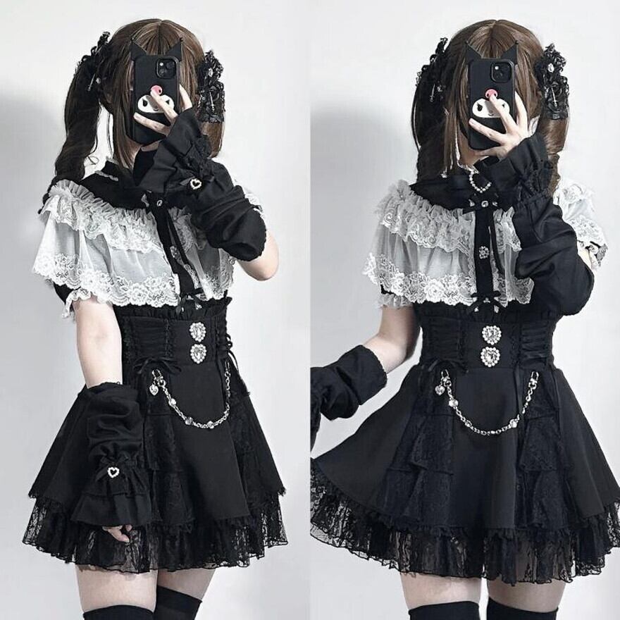 ライブやイベント、お茶会、撮影会など、特別な日のお出かけにぴったりです。地雷系の定番アイテムである黒のスカートや、病み可愛いアクセサリーと合わせれば、完璧なコーディネートが完成します。
