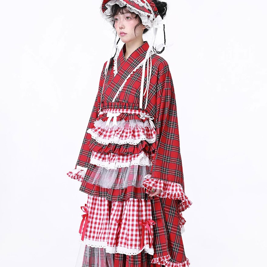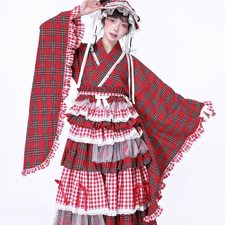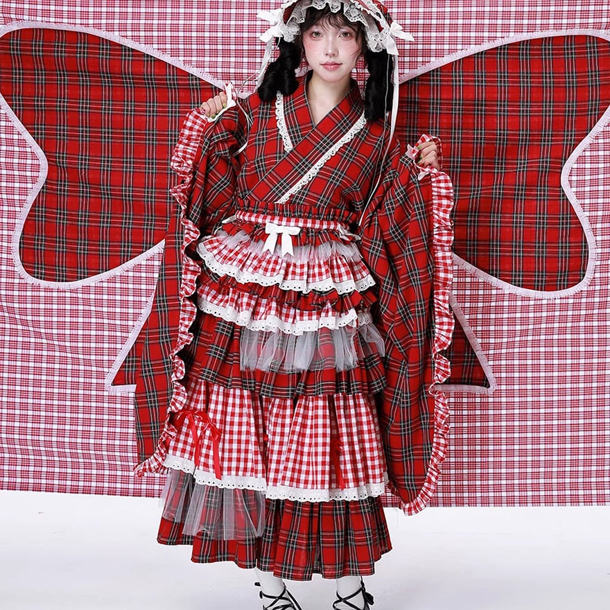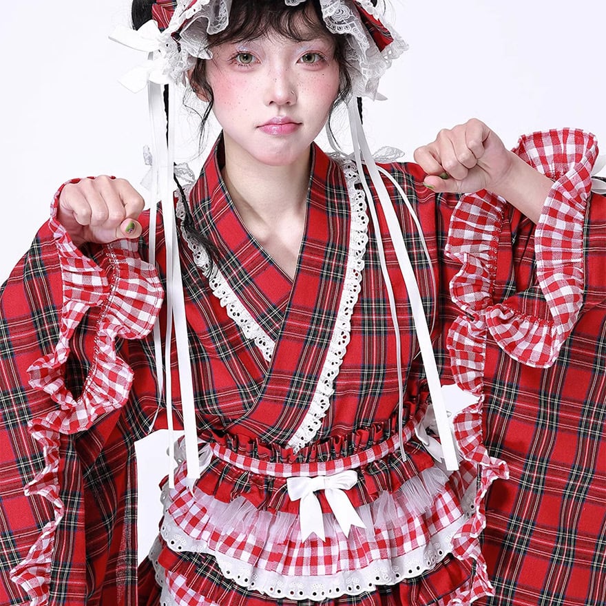 関連キーワード: #和ロリ #着物風 #チェック柄 #コスプレ #イベント衣装 #コンカフェ #ロリータ #フリル #可愛い