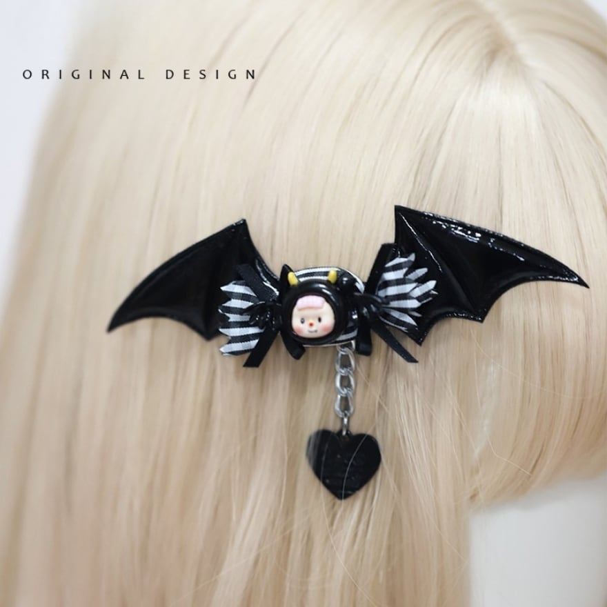 このヘアクリップは、ロリィタ 服世界観とハロウィンのモチーフが融合した、愛らしいデザインが特徴です。