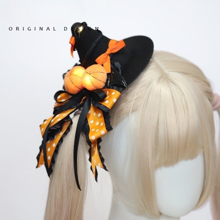 このヘアクリップの魅力は、コウモリの持つミステリアスな雰囲気と、パンプキンやリボンの持つ甘さが融合した、唯一無二のデザイン。これ一つで、ロリィタ 服ハロウィンコスチュームが完成する。