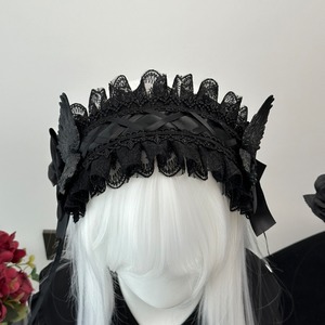 このヘッドドレスは、ゴシックロリィタのダークで耽美な世界観を凝縮したデザインが特徴です。