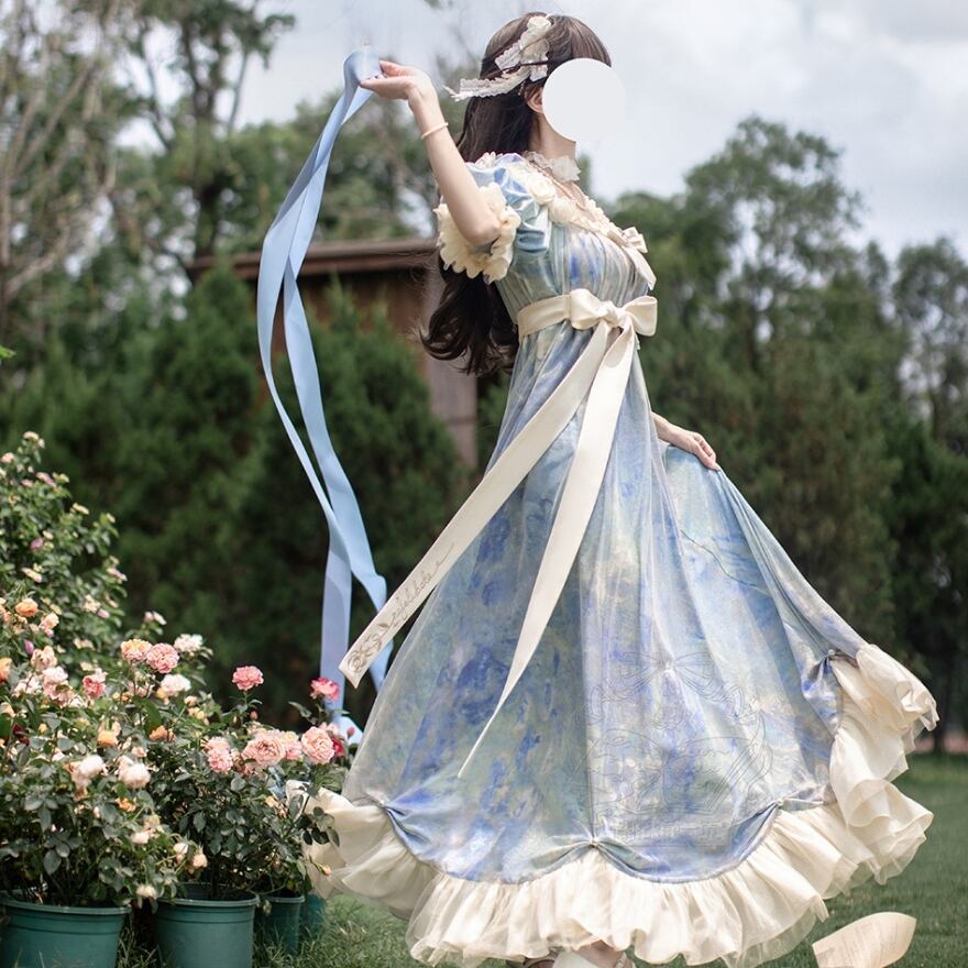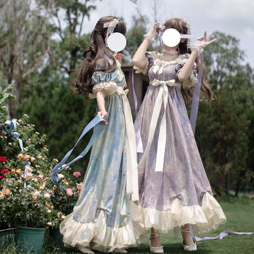 クラシカルロリィタ ロング ワンピース 油絵風 レトロ 田園風 お茶会 女子会コーデ