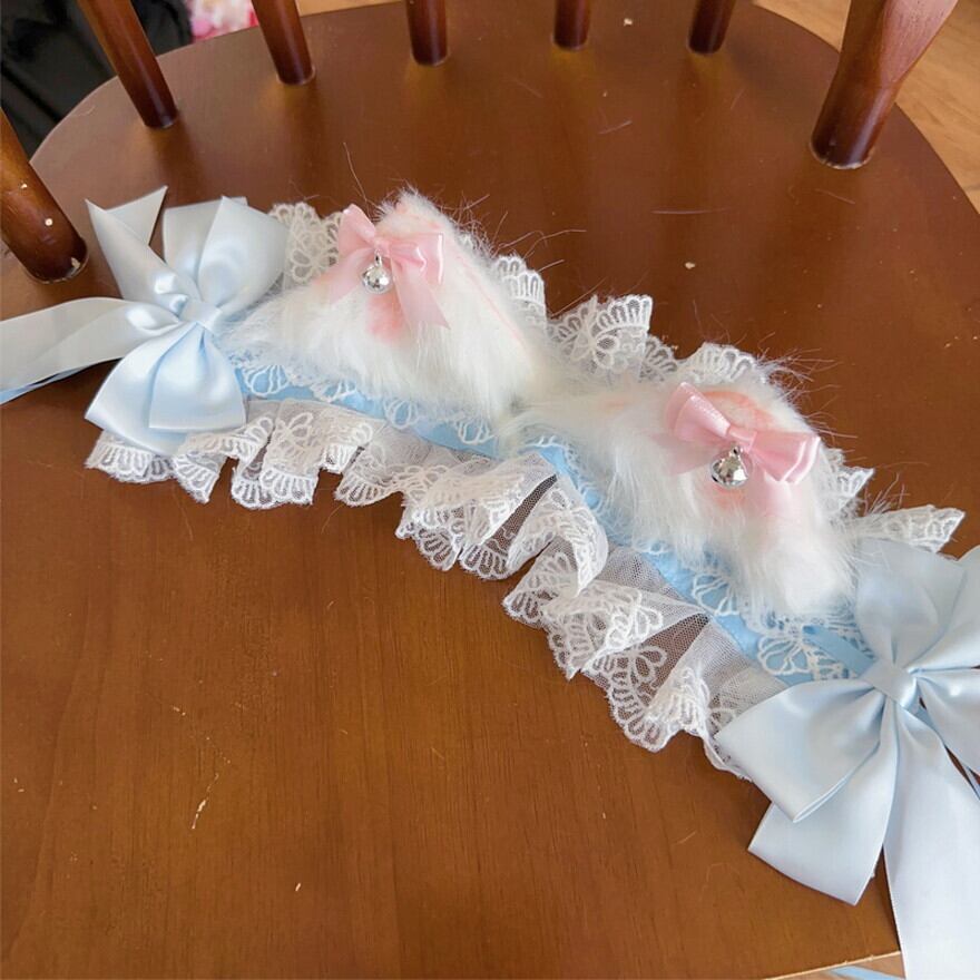 耳の下には、繊細なレースとリボンがたっぷりとあしらわれており、ロリィタや甘いファッションにもぴったり。