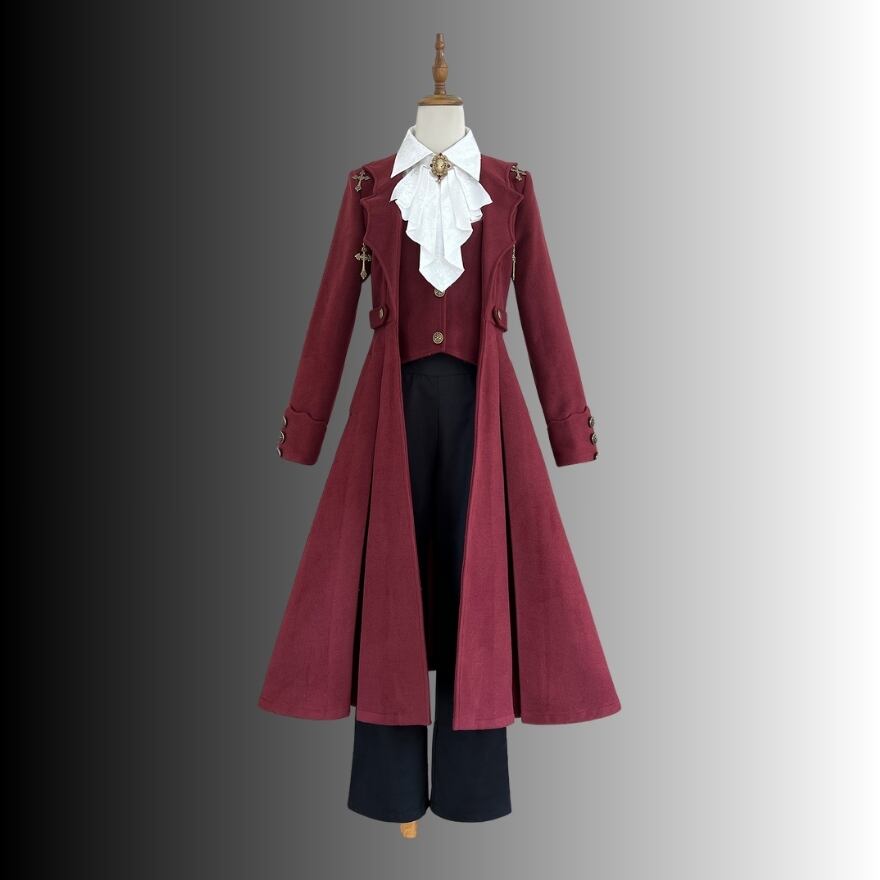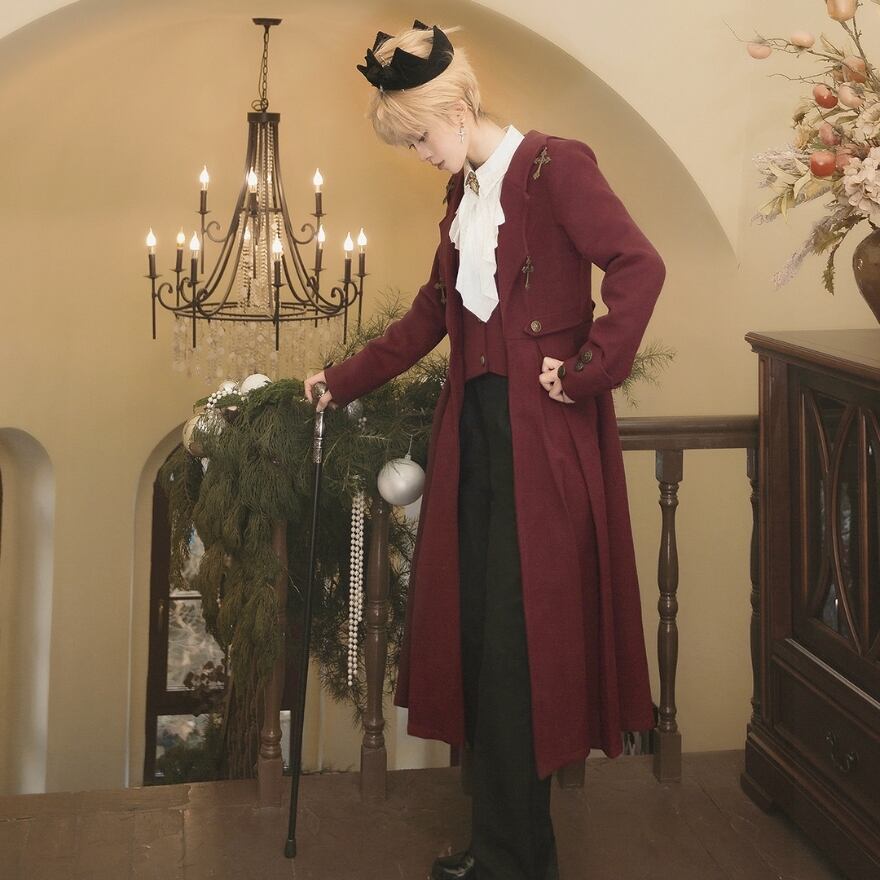 古城に佇む、気高きプリンス。優雅なフリルと端正なシルエットが、あなたの存在を神秘的に引き立てるロングコート