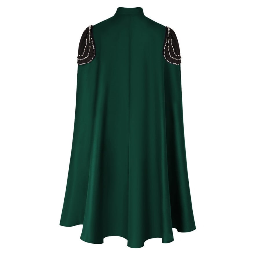 闇夜に紛れ、ミステリアスな存在感を放つ。ゴシックなマントが、あなたのスタイルを神秘的に彩る。