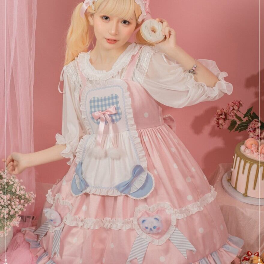 サブカル 服 地雷系 通販 甘ロリ ジャンパースカート ピンク メイドさん かわいい ジェニーベア